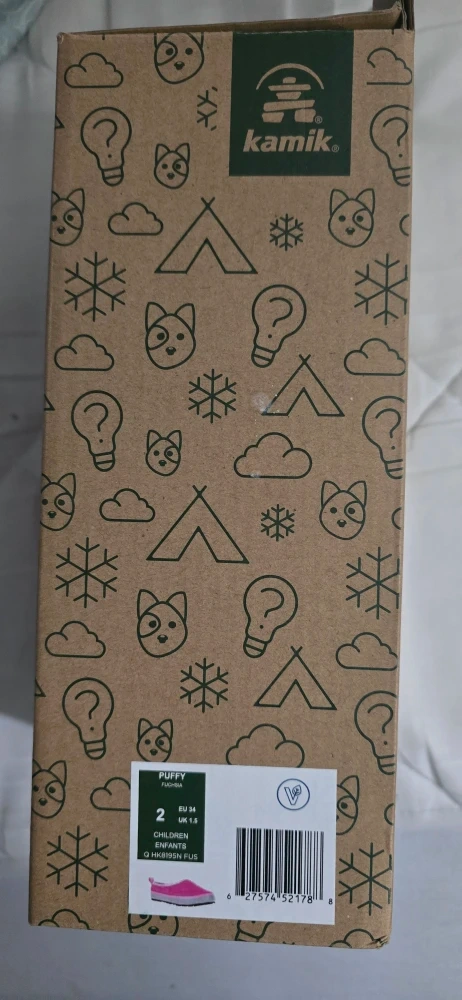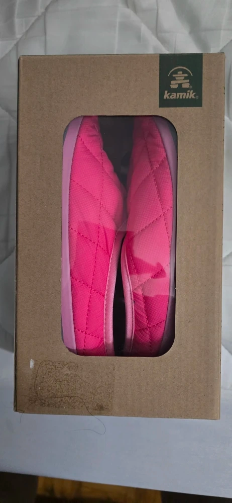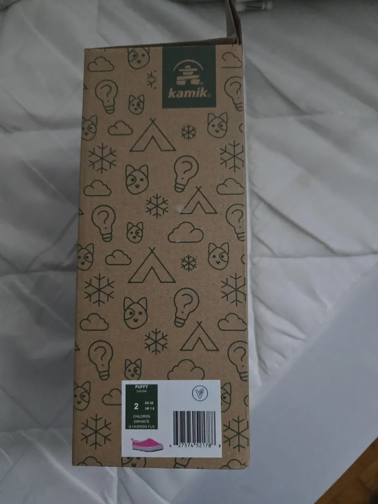 These are brand new Kamik Puffy shoes for kids, size 2! The colour is a vibrant fuchsia and they come in the original box