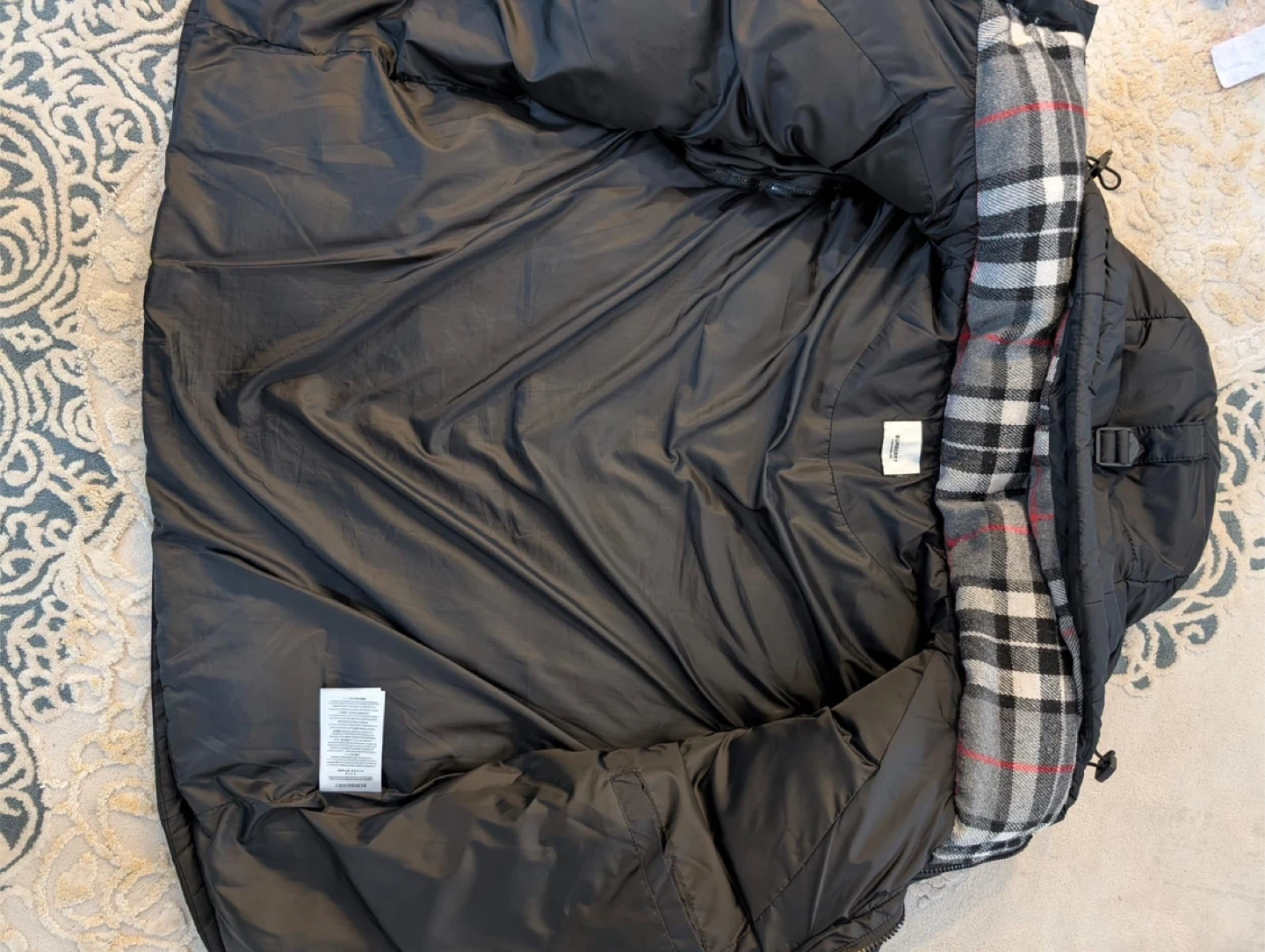 Selling a Burberry black puffer jacket. It's in great condition and perfect for the colder weather! The jacket features a stylish design and is made with high-quality materials. It has a comfortable fit and is sure to keep you warm and cozy. Feel free to ask if you have any questions!