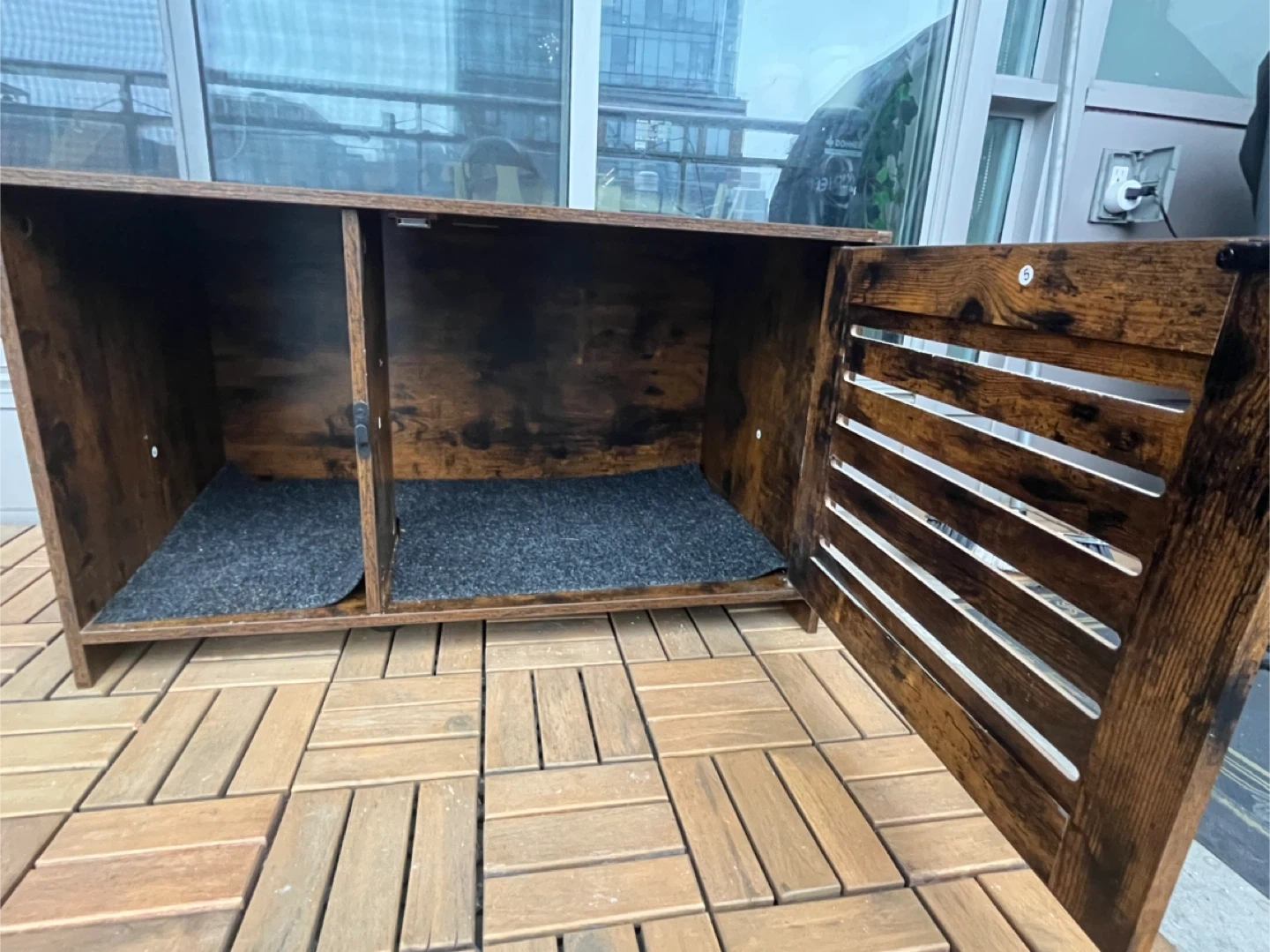 Selling a wooden litter box cover. Can be multi use as a pet house or storage for a pet supplies. It’s a large size litter box and is practically new very clean.