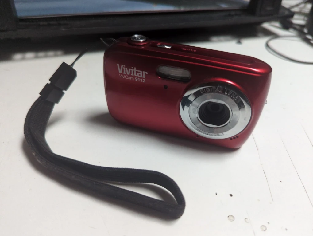 Selling a Vivitar VivCam 9112 digital camera in red. It's in good condition and ready for a new user. Perfect for capturing memories!