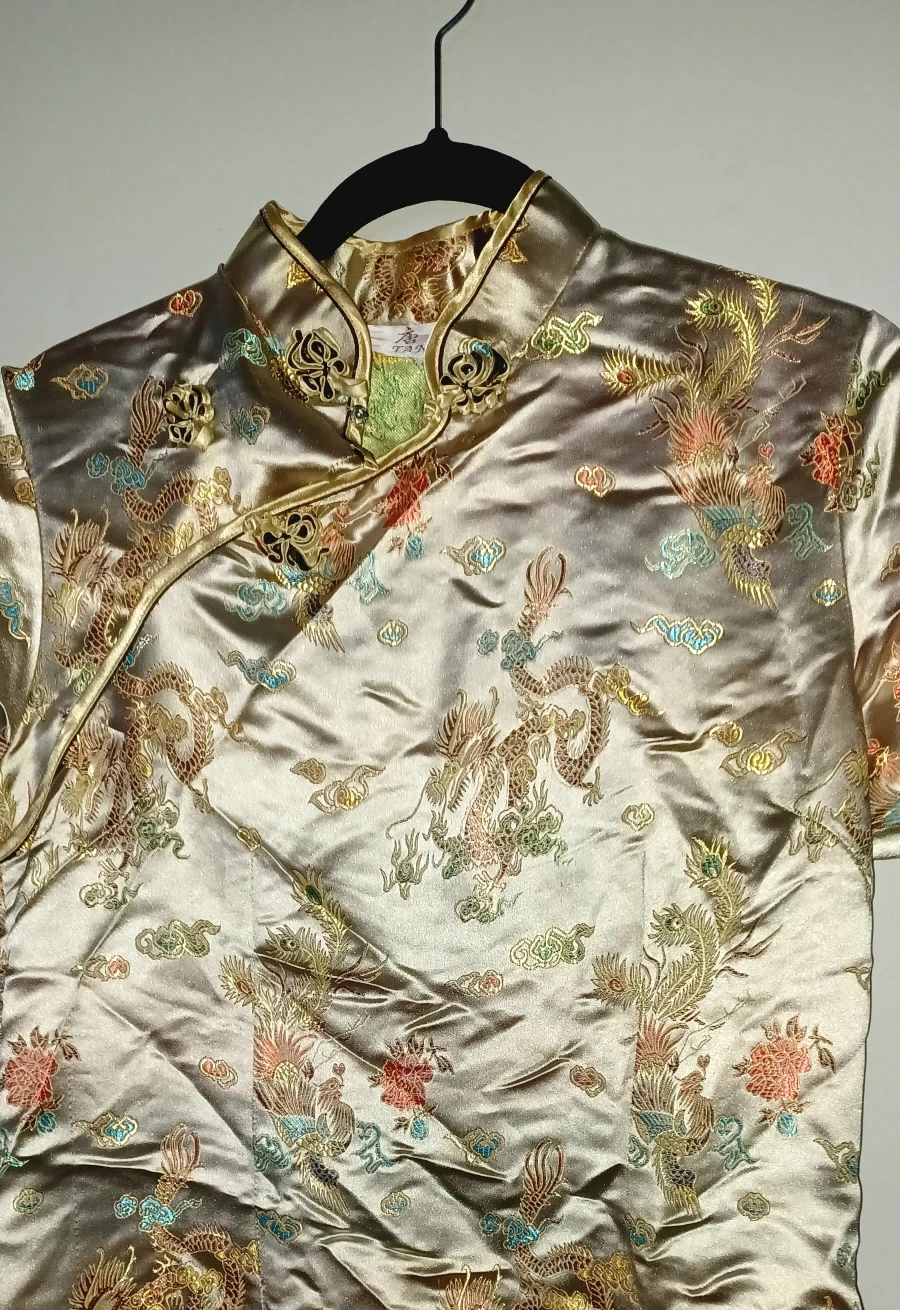 Here's a pretty 2 Asian-style blouse with a lovely floral pattern. It's in great shape .