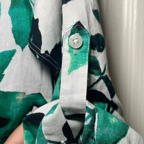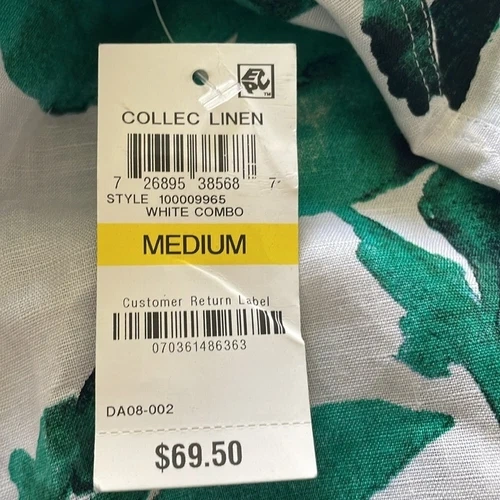 Brand new with tags. The first 5 shots are of the actual product. The rest are for you to see the fit. Material: 55% linen and 45% cotton. Made in Vietnam. Excellent condition, comes from a pet-free, smoke-free home.