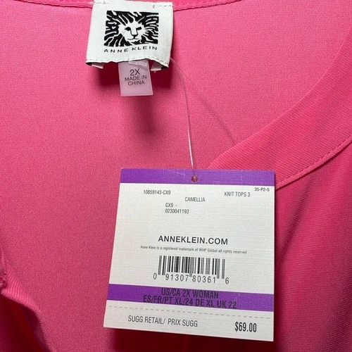 Anne Klein Pink Sleeveless Top sz 2X