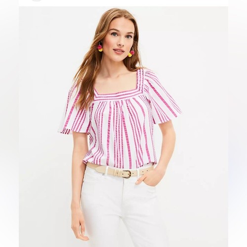 Ann Taylor LOFT Striped Square Neck Top sz XXS Pet