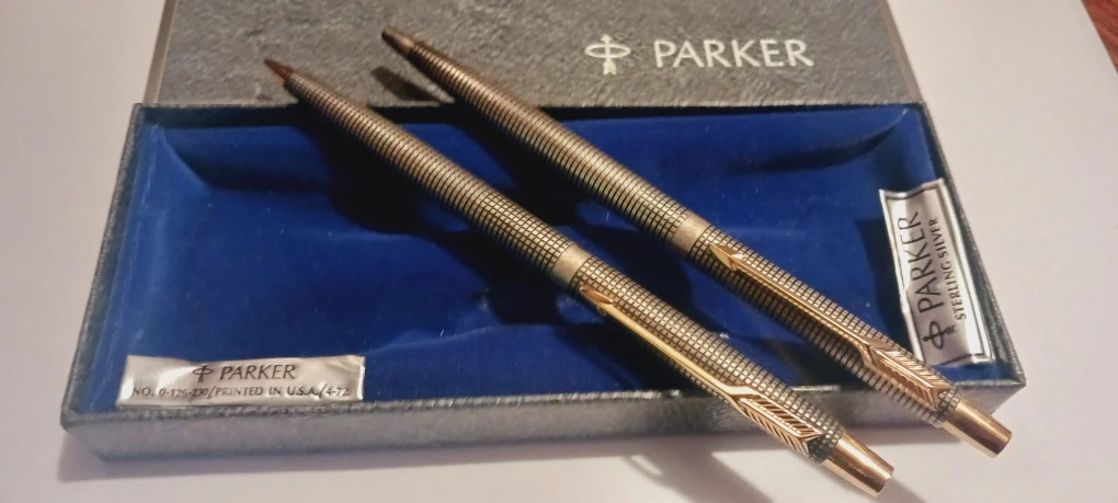 PARKER STERLING SILVER 925 AUTHENTIC SIGNED COLLECTIBLE BALLPOINT SET OF PEN & PENCIL. EXCELLENT CONDITION. Selling a set of Parker Sterling Silver ballpoint pens. They come with their original box. They are stamped PARKER STERLING 925. Excellent condition. Working perfectly both pen & pencil.