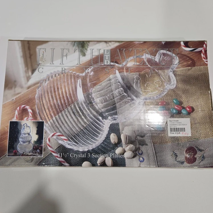 Buy & SellNEW Fifth Avenue Snowman Crystal DishNEW Fifth Avenue Snowman Crystal Dish$10Brand new in box Fifth Avenue 11.5" Crystal dish. Snowman shaped with 3 sections ConditionNewWHERE TO MEETCheck LocationView MapSELLERAlanaSunnyside100 reviews0 chats·0 favorites·2 views