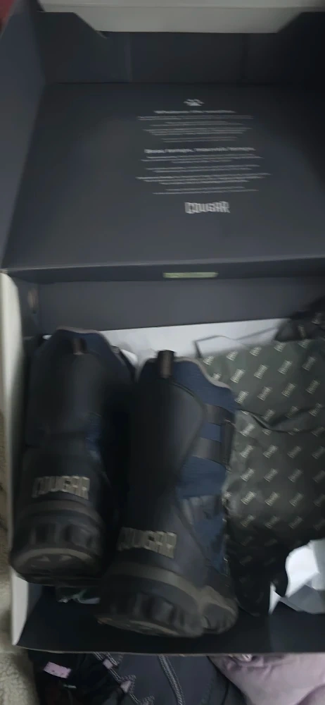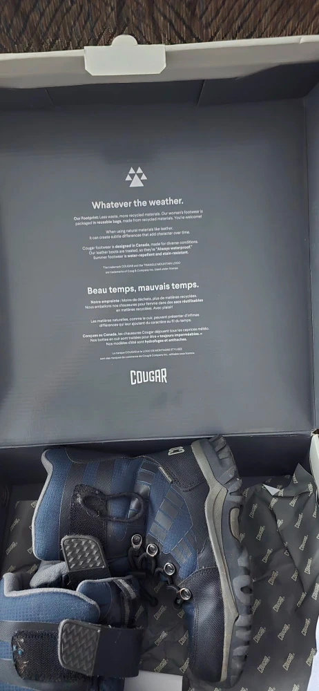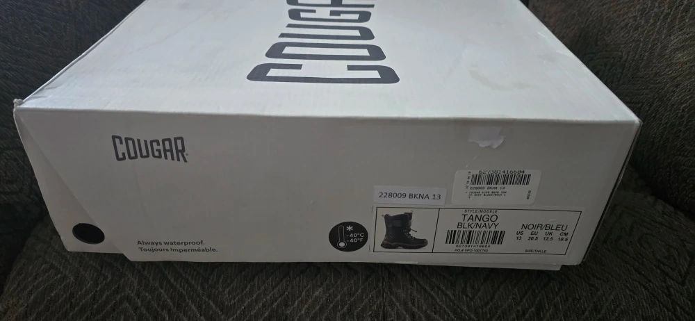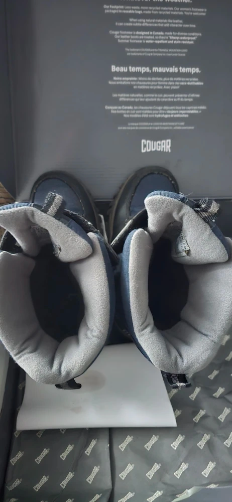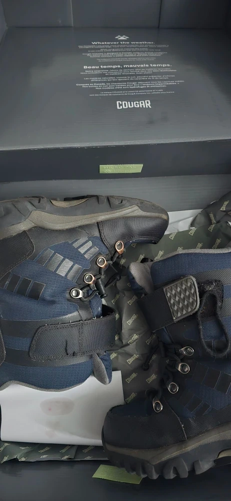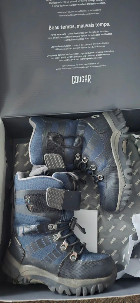 Selling a pair of Cougar Tango winter boots in black and navy, Boys size 13. These boots are always waterproof and are perfect for the Canadian winter! They come with the original box.