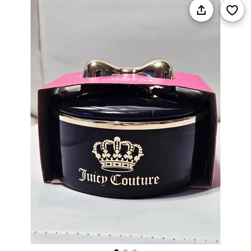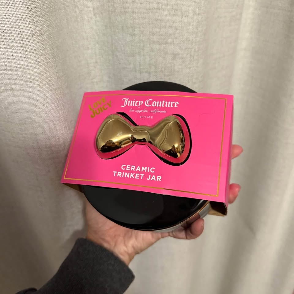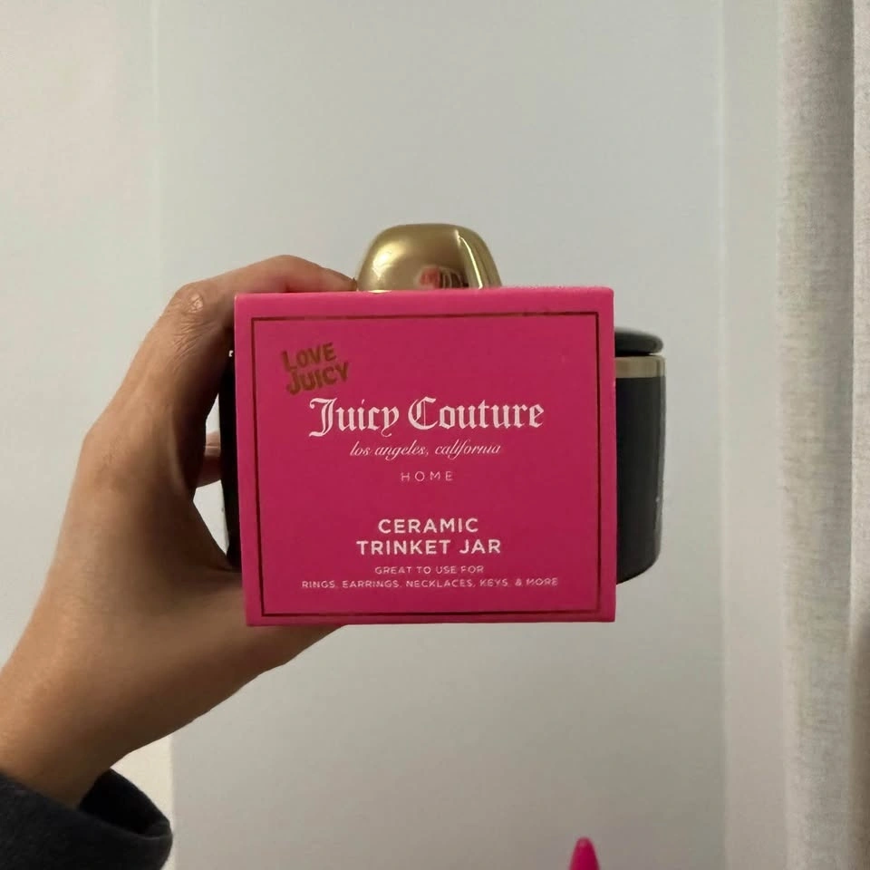 The perfect gifting item! Brand new still in package. Trinket jar can be used to store jewelry or anything really. Cute decor and perfect for juicy couture fans. Selling because I already have a pink version. Please check out my profile for more juicy couture finds.