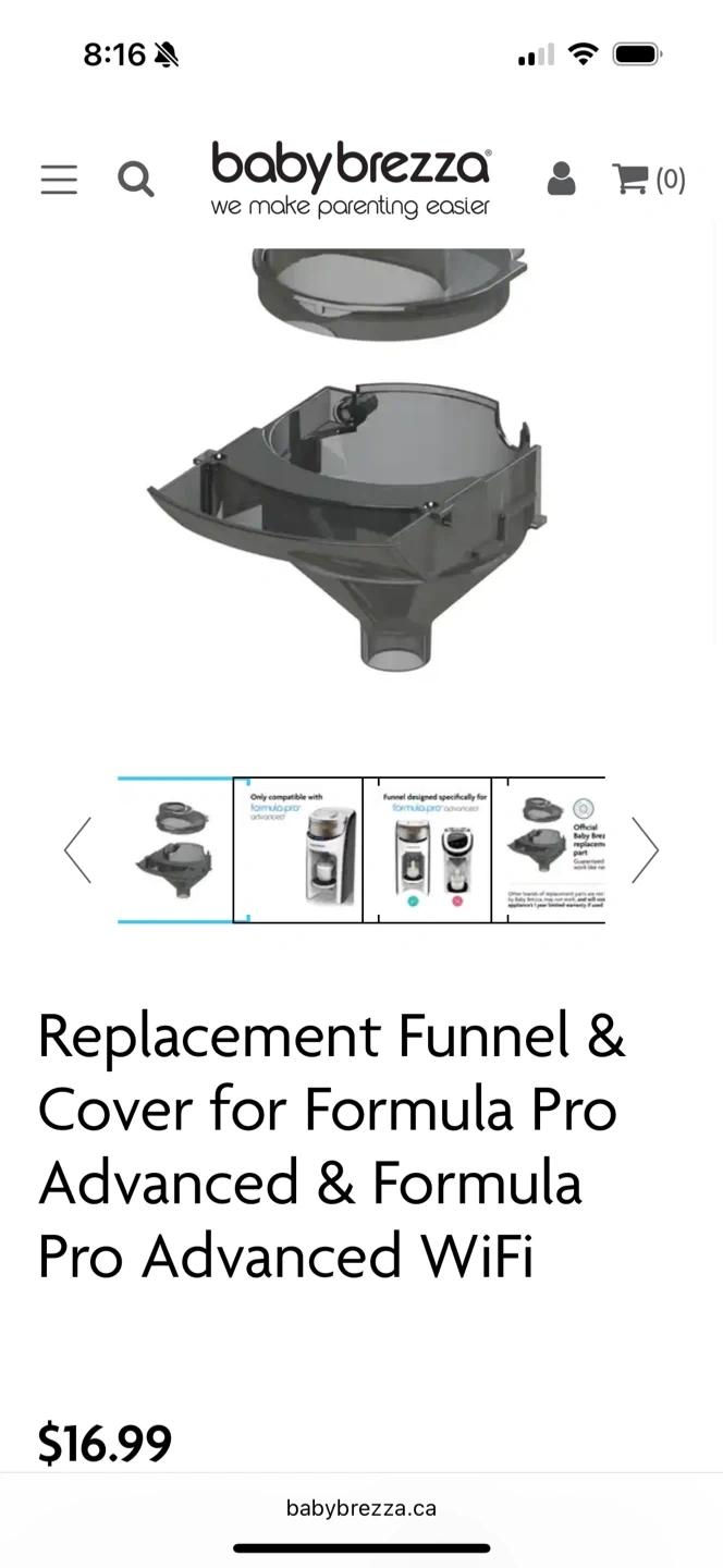 Selling a replacement funnel and cover for the Formula Pro Advanced & Formula Pro Advanced WiFi by Baby Brezza. This is only compatible with those models.