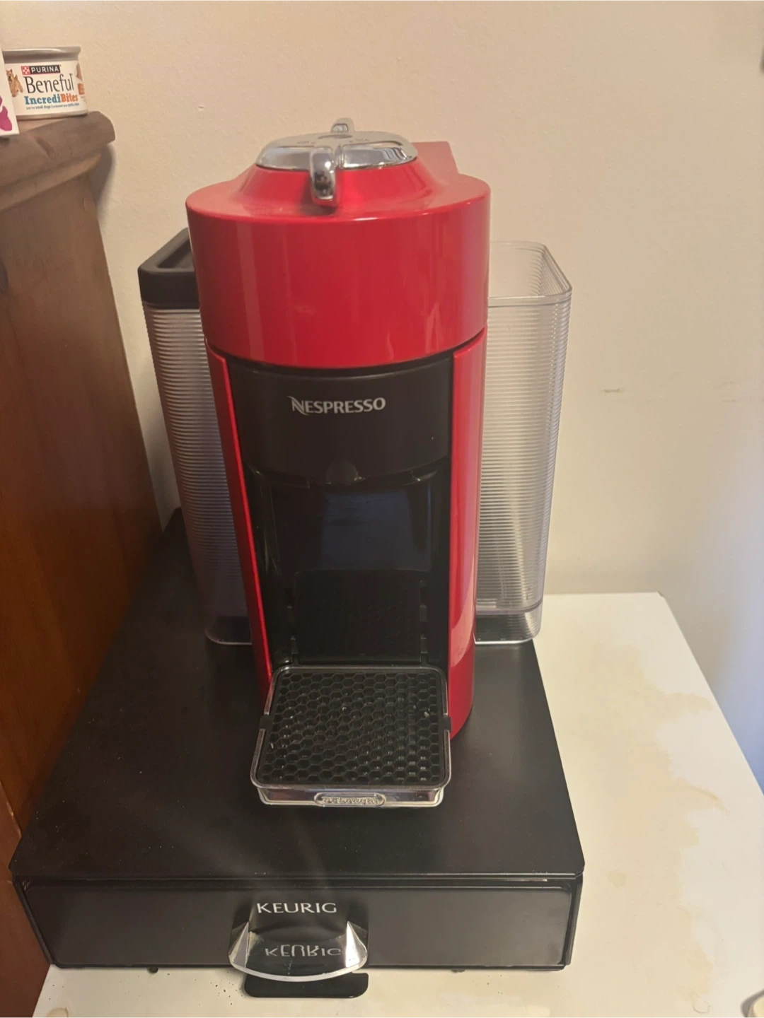 Selling a Nespresso Vertuo coffee machine! It's in great shape and ready to make some delicious coffee. It's a vibrant red colour that will add a pop to any kitchen