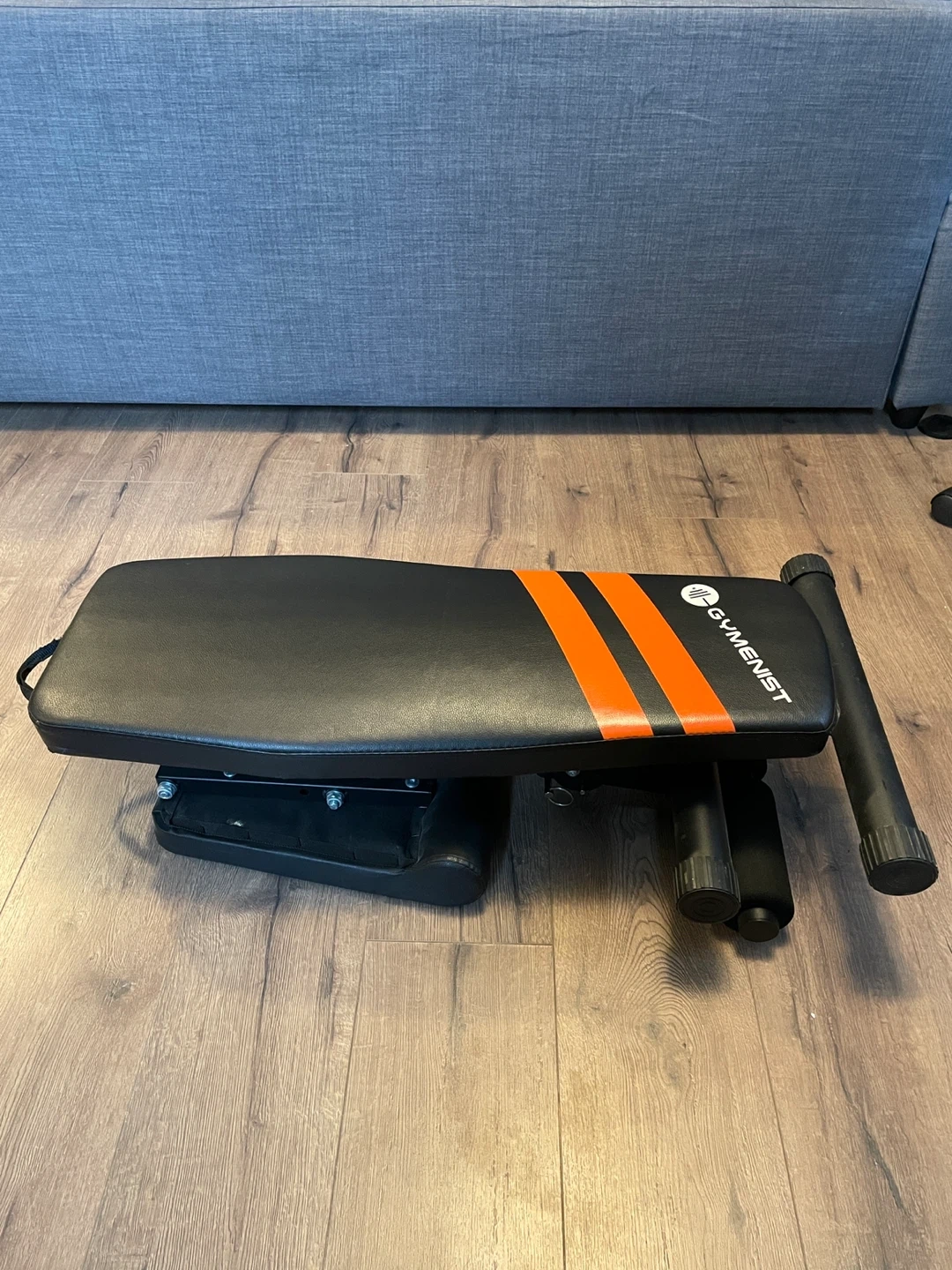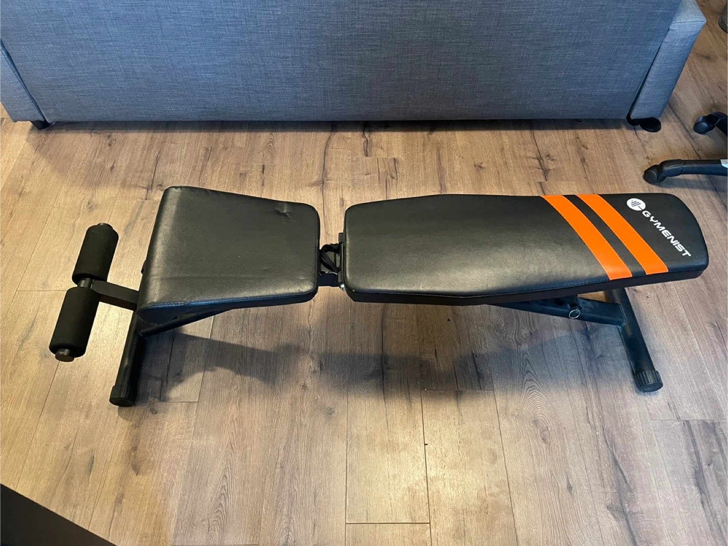 Selling a Gymenist adjustable weight bench in black. It's in great shape and ready for your home gym! The bench is adjustable to different angles for various exercises. Folds to a compact 33 x 17 inches for easy storage and is 55 x 17 inches when adjusted to 180 degrees.