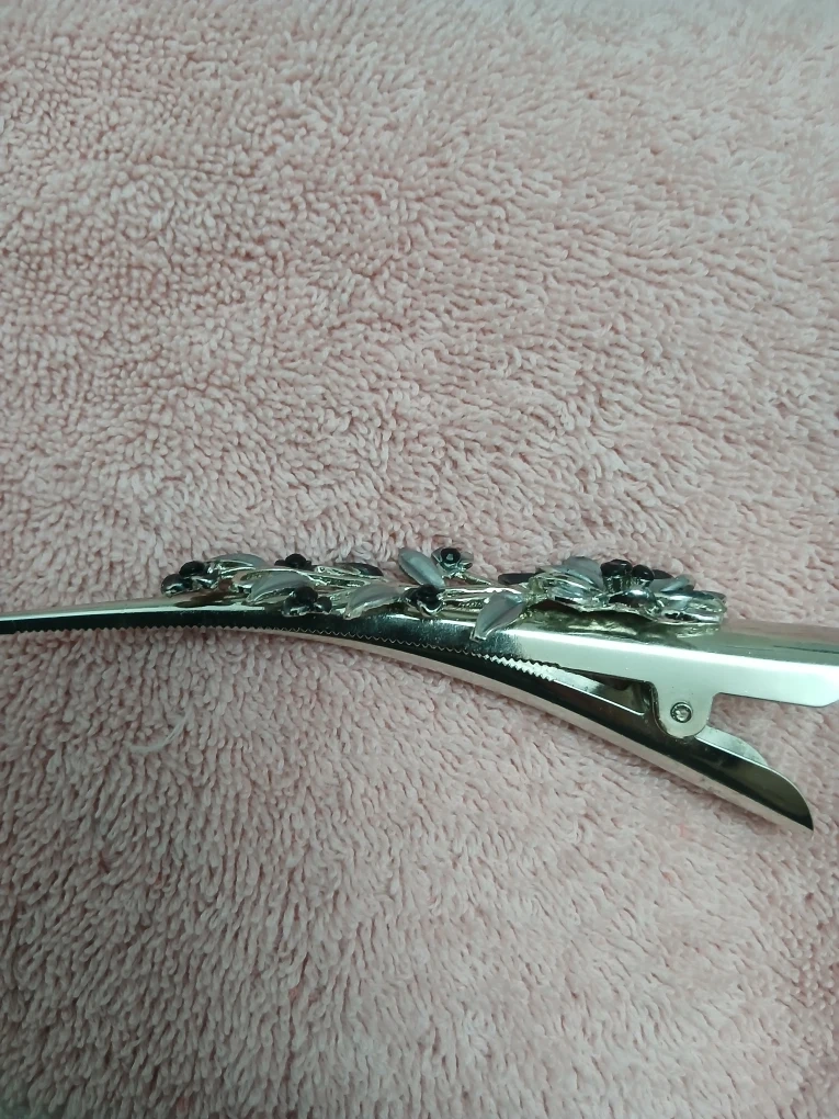 Here's a lovely silver hair clip adorned with delicate floral details! It's in great condition and ready to add a touch of elegance to your hairstyle...