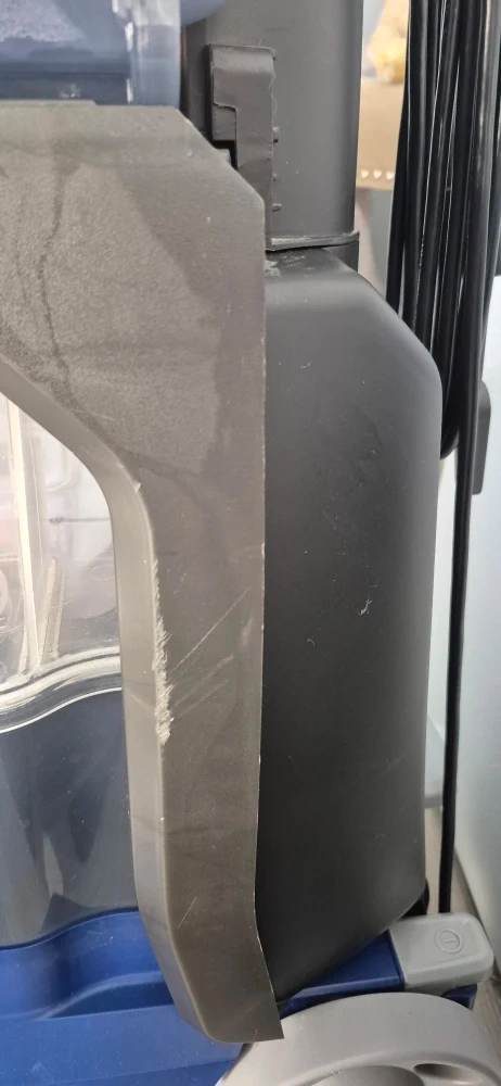 Has a couple light cosmetic scuffs on the side (shown in photos), but nothing that affects performance. Runs like a champ.
