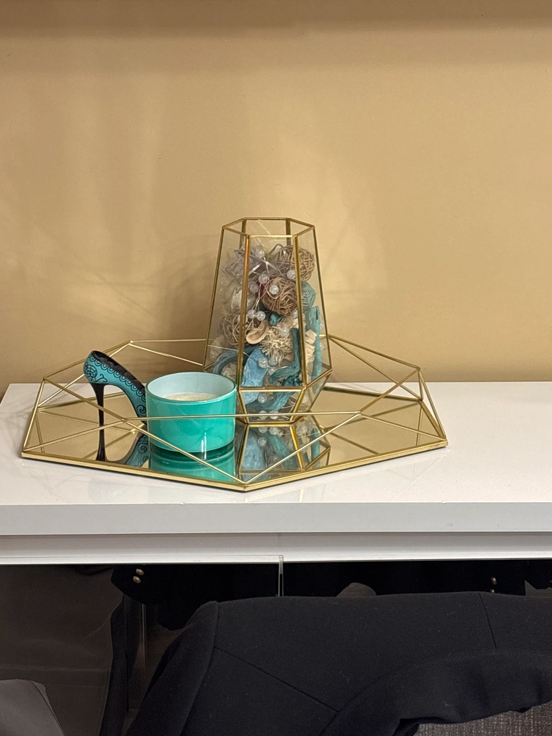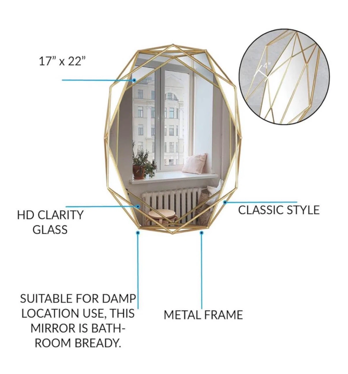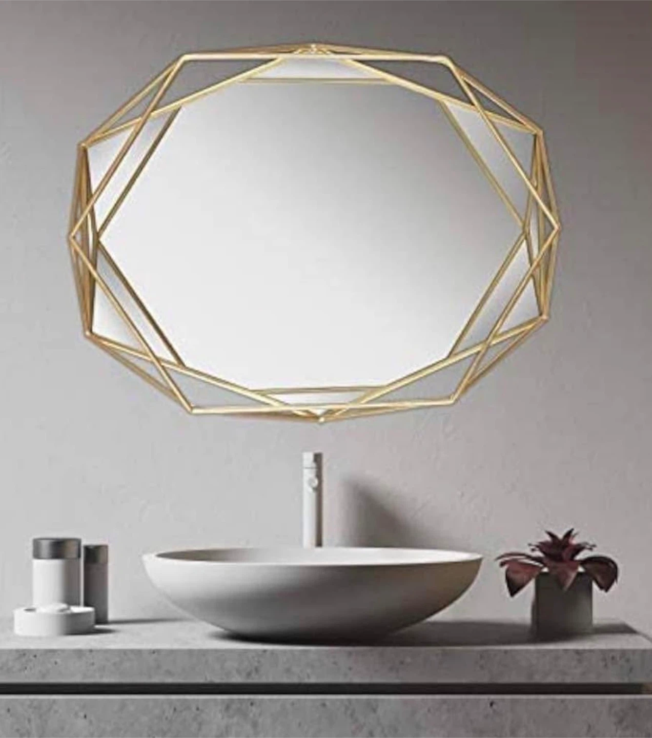 Add a touch of modern elegance to your space with this geometric mirror! The gold frame creates a stylish and eye-catching design that will enhance any room's decor