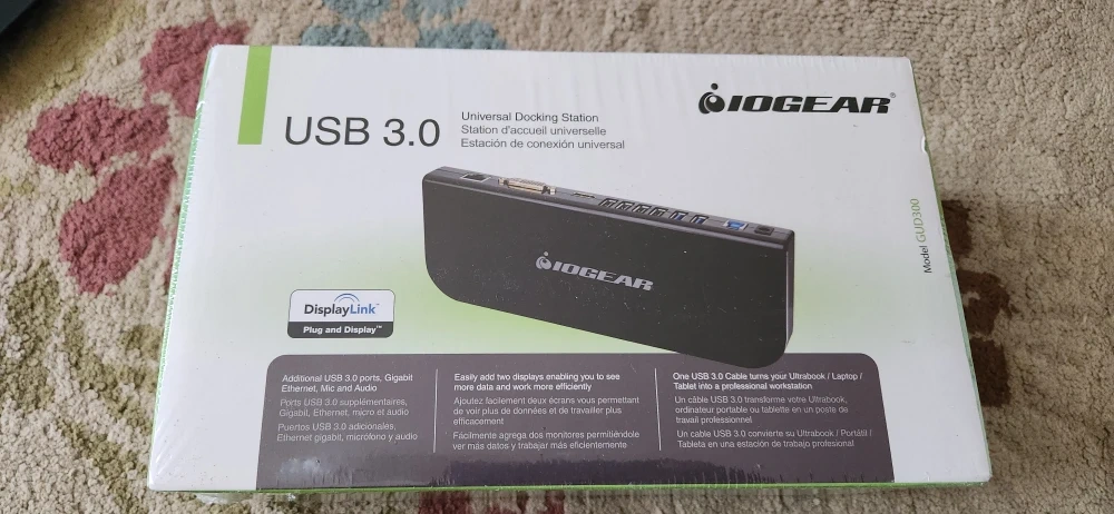 Selling an IOGEAR Universal Docking Station, model GUD300. It has additional USB 3.0 ports, Gigabit Ethernet, and Mic and Audio ports. You can easily add two displays to see more data and work more efficiently. Also included is a USB 3.0 cable to turn your Ultrabook/Laptop/Tablet into a professional workstation