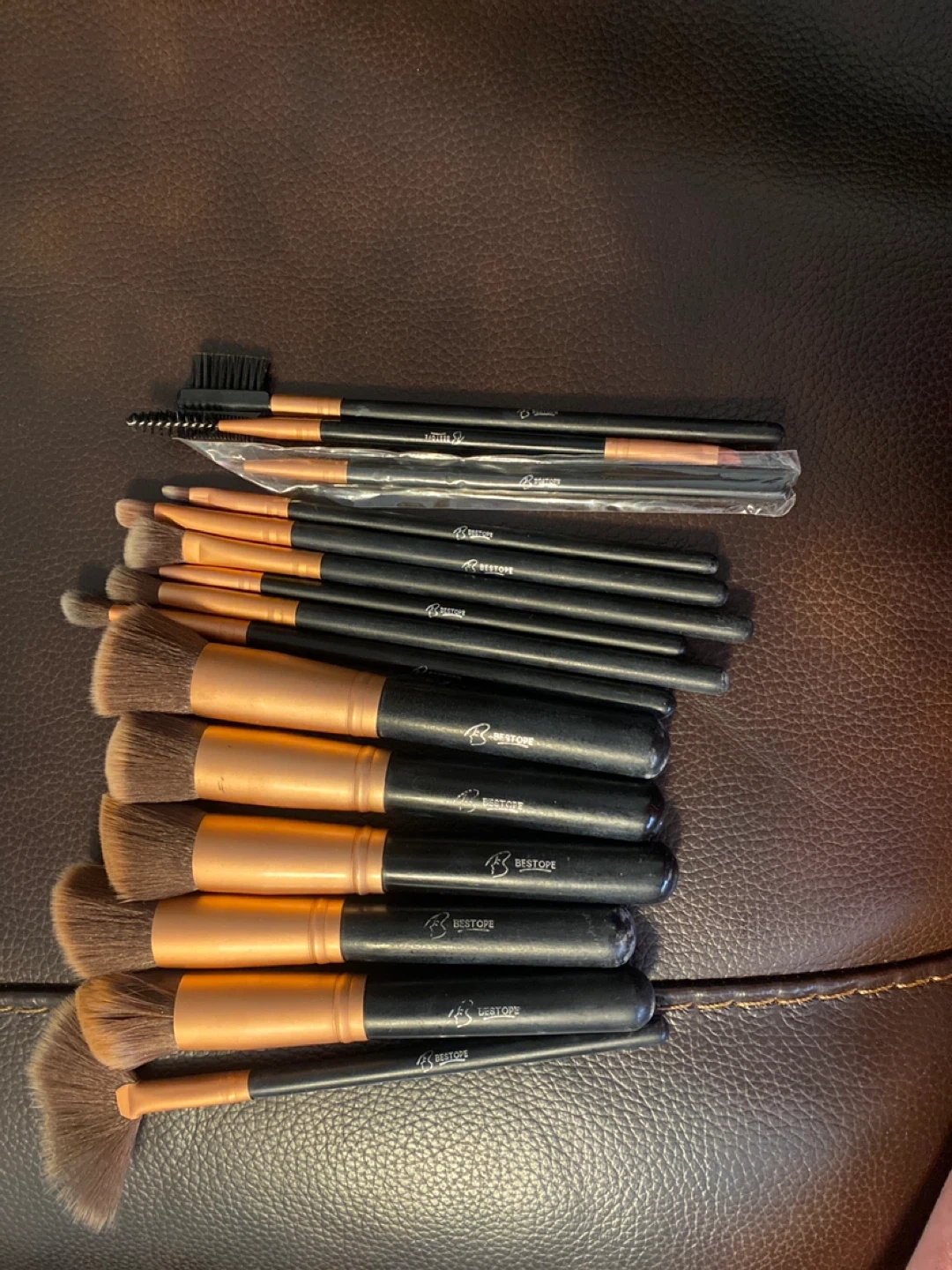 Selling a BESTOPE makeup brush set. Includes a variety of brushes for different makeup applications. The brushes have black handles and copper-colored ferrules.
