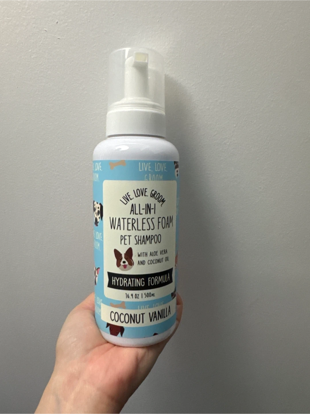 Giving away a bottle of Pet Shampoo. It's an all-in-one waterless foam that gently cleans, conditions, detangles, and moisturizes your pup's coat. It also contains Aloe Vera and Coconut Oil to naturally soothe, hydrate, and heal. The scent is Coconut Vanilla and the size is 16.9 oz (500ml).