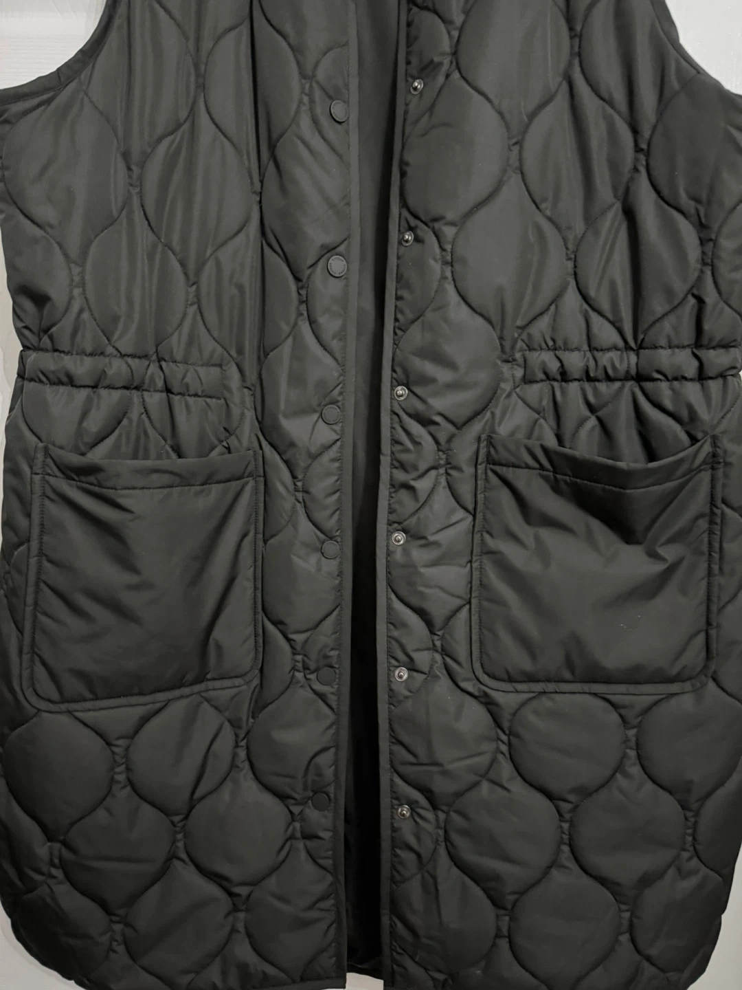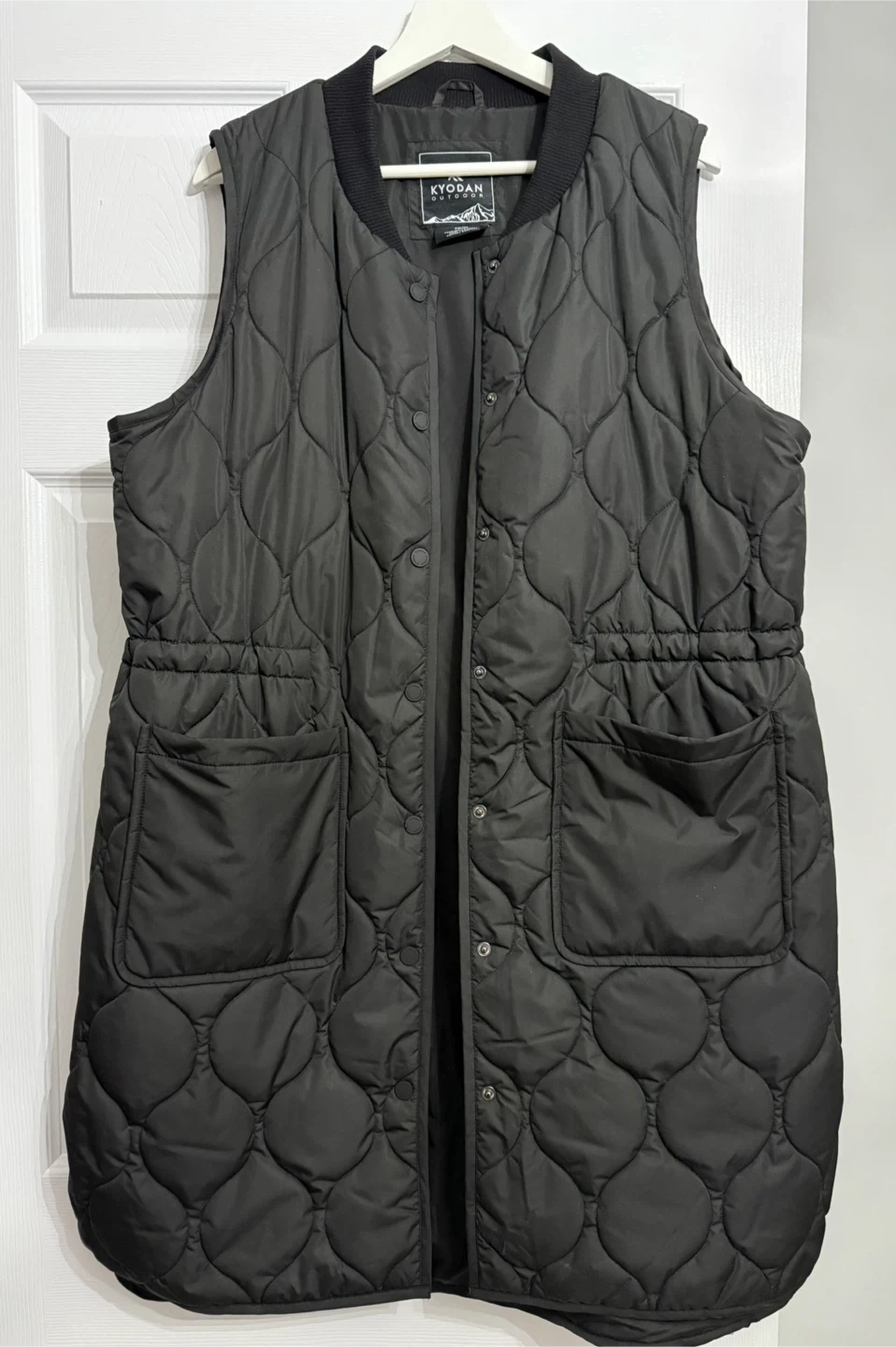 I'm selling a Kyodan Outdoor quilted vest in size XL. It's a stylish and comfortable piece, perfect for layering! The vest is black and features a quilted design with convenient pockets. It's new without tags and ready for a new owner