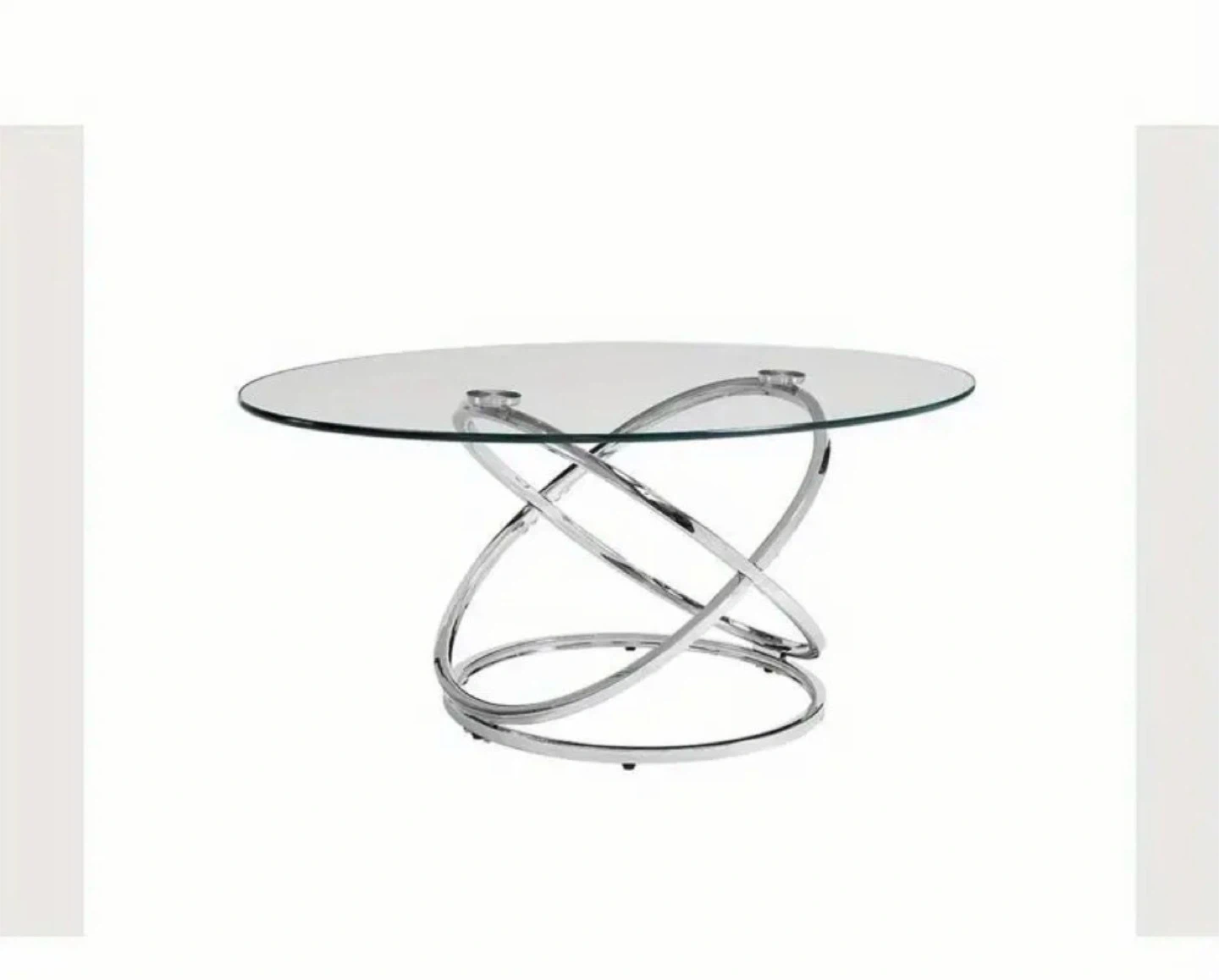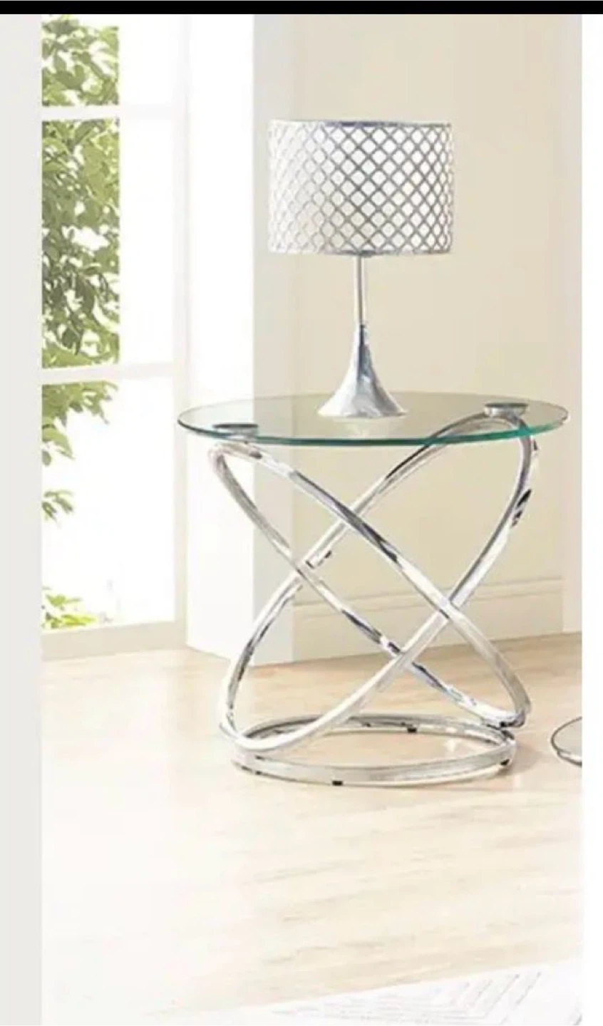 Selling 3 stylish glass top end table with a unique chrome base. This table adds a modern touch to any living space. It's perfect for displaying decorative items or holding drinks and snacks. Great condition!