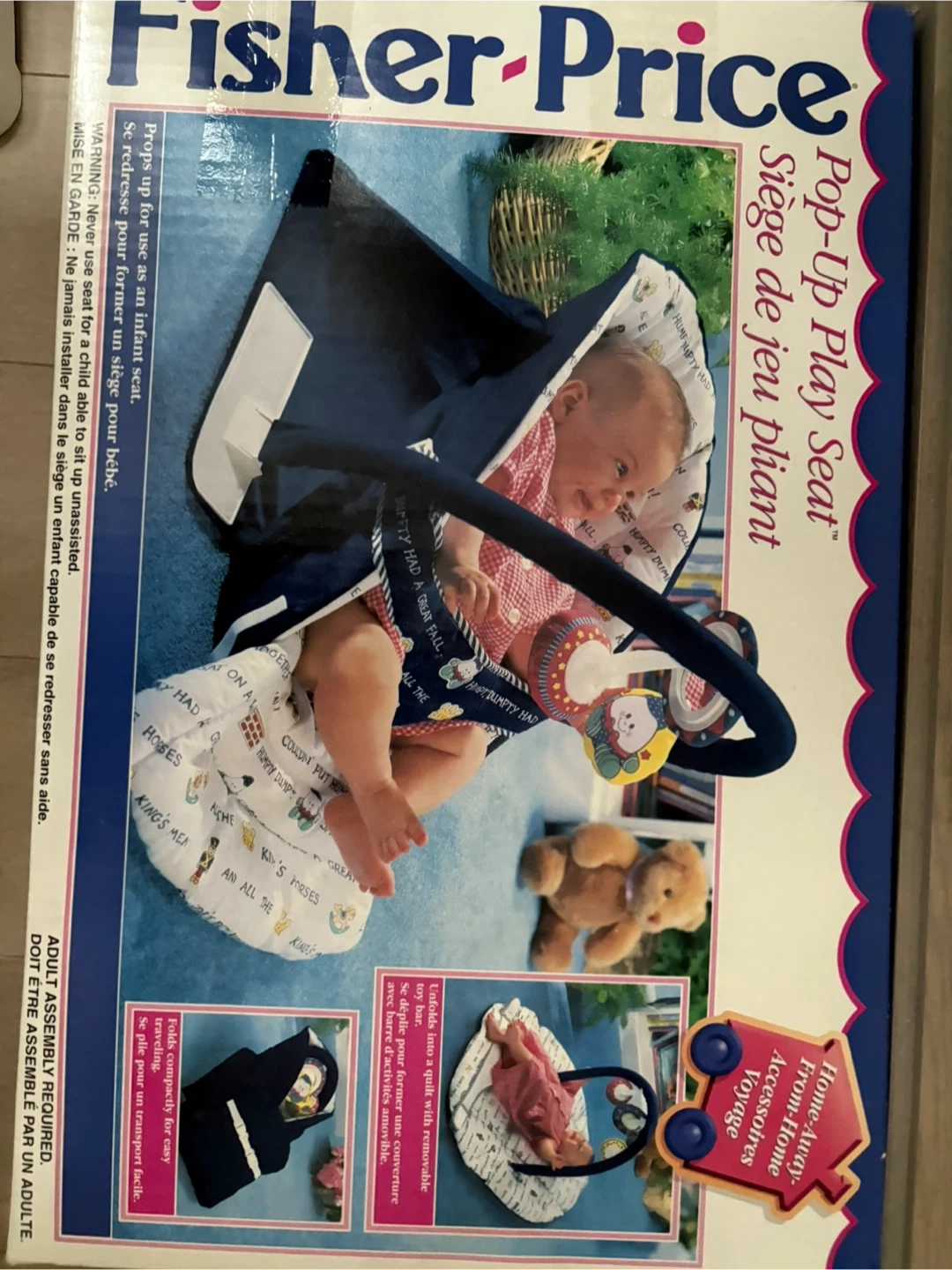 Selling a Fisher-Price Pop-Up Play Seat! It unfolds into a quilt with a removable toy bar. It also folds compactly for easy travelling. Perfect for infants!