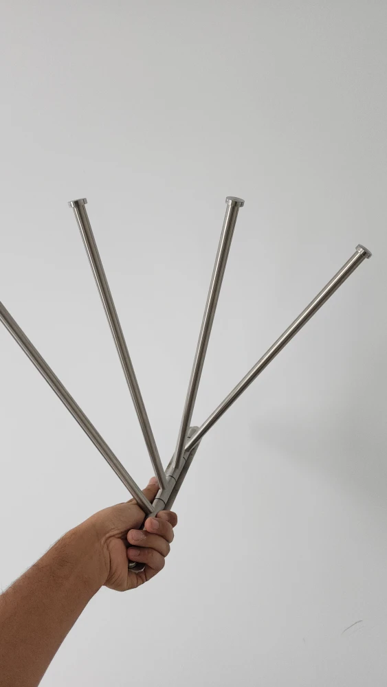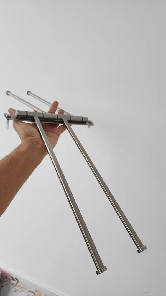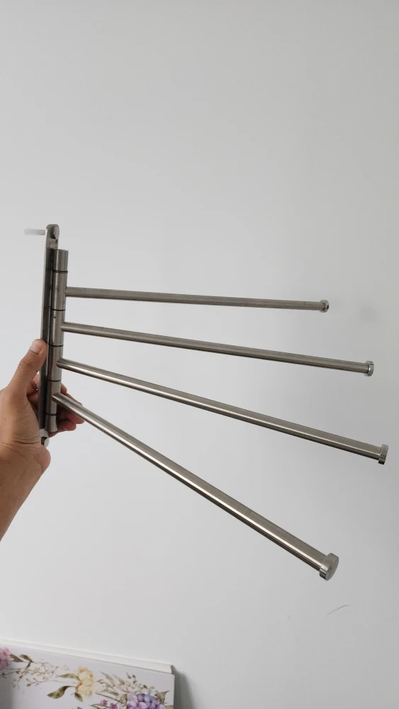 It has multiple arms that swivel independently beyond 180 degrees, making it easy to hang and dry towels of different sizes. A practical and space-saving solution for any home!