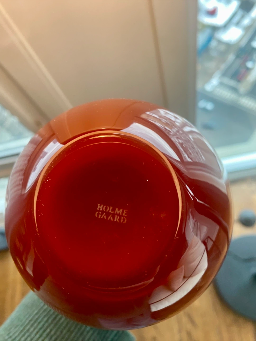 Ombré orange Holmegaard glass vase in as new condition. Its small size and vibrant colour would add a pop to any bookcase, shelf or mantle.