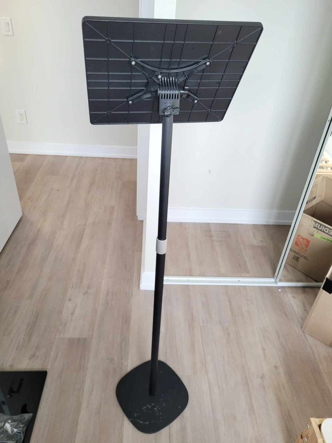This is a multifunctional floor stand that is perfect for laptops or projectors! It has an adjustable height and angle. It also has a stable load capacity of 7kg. *There are scratches on the base plate but it works perfectly.