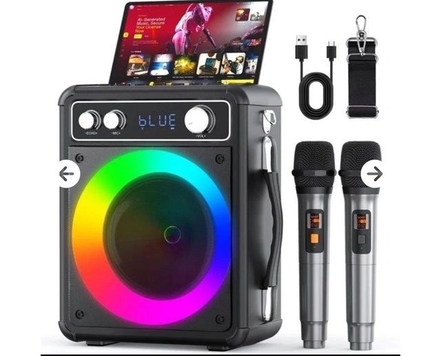Get ready to sing your heart out with this VOSOCO Karaoke Machine, a portable Bluetooth karaoke speaker that comes with two wireless microphones! It's a PA system perfect for adults and kids alike, featuring LED lights and echo adjustment. It supports TWS/TF/USB/AUX for all your home party needs. This karaoke machine is ready to bring fun and music to your gatherings! Here are some cool features: * Portable Bluetooth speaker * Two wireless microphones included * LED lights for a party atmosphere * Echo adjustment * Supports TWS/TF/USB/AUX Unleash your inner rockstar with this awesome karaoke machine! Just a friendly note: if the ad is up, it's still available!