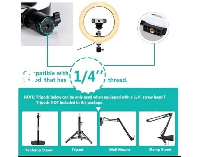 Illuminate your streaming or video calls with this handy ring light! This used ring light features adjustable brightness levels to create the perfect lighting for any situation. It's compatible with webcams such as the Logitech C920, C922x, C930e, Brio 4K, C925e, MX Brio 4K, StreamCam, Brio 500, and C615. It also includes a 1/4" screw hole and is a 10" light. Please note that a tripod or stand are not included. Here are some specs: * Adjustable Brightness * 1/4" Screw Hole * 10" Light This ring light is a fantastic addition to any content creator's setup. It's in good condition, ready to make you shine! If the ad is up, it's available!