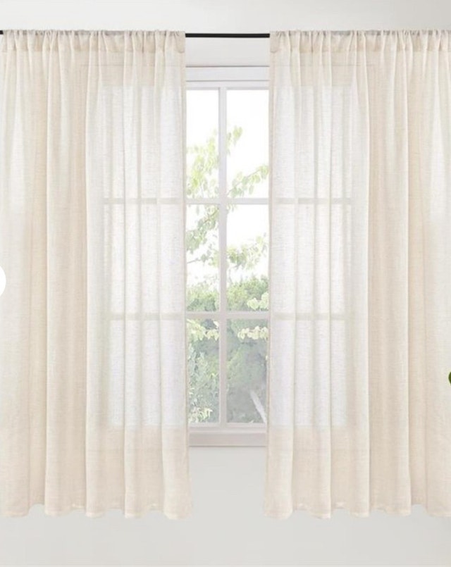 Add a touch of rustic charm to your living space with these BGment beige linen curtains. These semi-sheer drapes gently filter light, creating a cozy and inviting atmosphere in any room. These curtains have a rod pocket for easy hanging, making them perfect for a bedroom, living room, or any space where you want to add a touch of natural elegance. These curtains are in used good condition. Specifications: * Cream semi-sheer linen * Rod pocket * Each panel is 52 inches wide * 63-inch length Curtains may not be the most exciting decor piece, but they sure do make a difference! If the ad is still up, the curtains are still available!