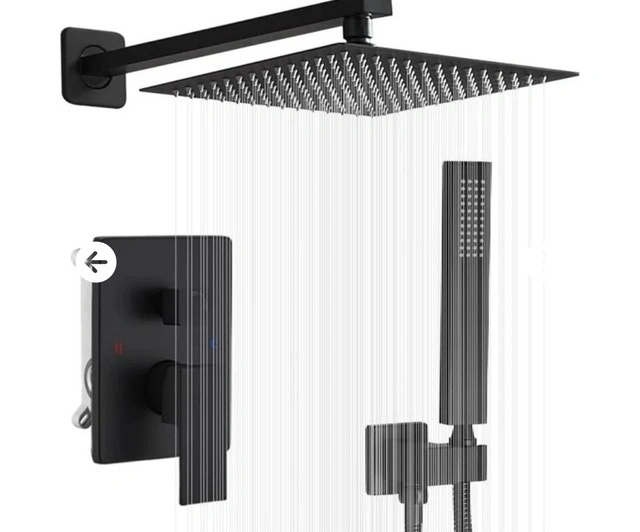 Upgrade your bathroom with this sleek, new 12-inch matte black rain mixer shower system, featuring an ultra-thin rainfall shower head for a spa-like experience. The silicone nozzle is easy to clean, ensuring lasting performance. Features: * 12-inch square rain shower head * Matte black finish * Silicone nozzle for easy cleaning * Handheld shower included Transform your daily shower into a luxurious escape. If you're seeing this ad, the shower system is still available!