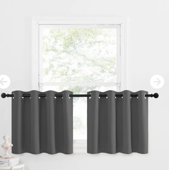 These NICETOWN kitchen curtains are designed for small windows and feature a thermal insulated blackout grommet. These curtains are new, these curtains effectively block out light and add a touch of elegance to your kitchen or any small window space. Specifications: * Brand: NICETOWN * Type: Kitchen Tier Curtains * Size: 52W x 24L inches (per panel) * Header: 1.2 inches * Colour: Grey * Panels: 2 Looking for a charming addition to your kitchen? These curtains might just be the thing! Just a friendly heads-up: if the ad's up, they're still available!