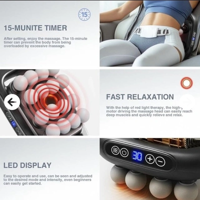 Experience deep muscle relaxation with this multi-functional massage. In great condition, this device is designed to target key areas with its powerful nodes and soothing heat function. Perfect for unwinding after a long day or relieving persistent muscle tension. Key features include: * Multiple massage heads for targeted relief * Adjustable intensity levels * Optional heat function for enhanced relaxation * Compact and portable design