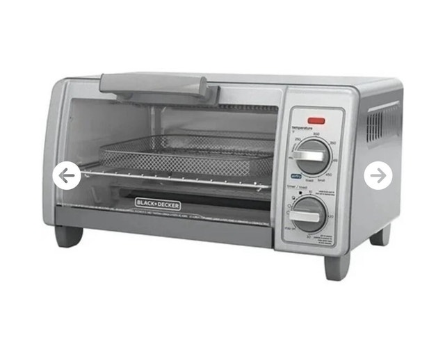 I am selling a few BLACK+DECKER™ Crisp 'N Bake Air Fry Toaster Oven. It's designed to fit a 12" pizza and offers a range of functions including baking, broiling, toasting, and air frying for versatile cooking. This unit is new and in box with original packaging. Here are some of its features: * Brand: BLACK+DECKER * Model: Crisp 'N Bake Air Fry Toaster Oven * Functions: Bake, broil, toast, air fry * Capacity: Fits a 12" pizza * Condition: New This handy appliance can be yours for $35. Or you could buy it on Amazon for over $100. It's ready to plug in and elevate your culinary adventures! If you're reading this, it's still available!