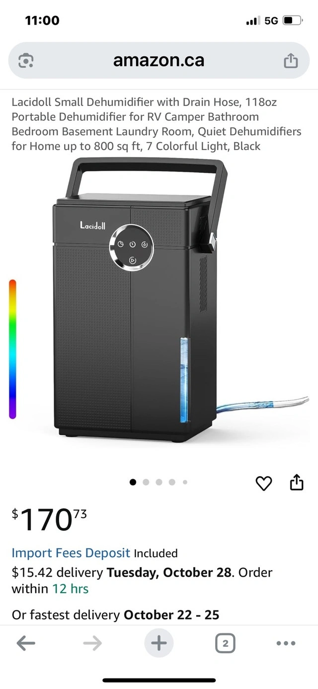 Keep your space comfortable with this new Lacidoll dehumidifier, designed to efficiently remove moisture from the air, featuring a 118oz capacity. This unit is brand new, still in its original packaging, ensuring top-notch performance and reliability. Here are some specifications: * Model Number: LCD-CS-07 * Rated Voltage: 120V * Rated Frequency: 60Hz * Rated Power: 65W * Water Tank Capacity: 118oz * Working Environment: 59F-104F, >45%RH Looking to declutter and spread some joy! If the ad is up, yes, it's still up for grabs!