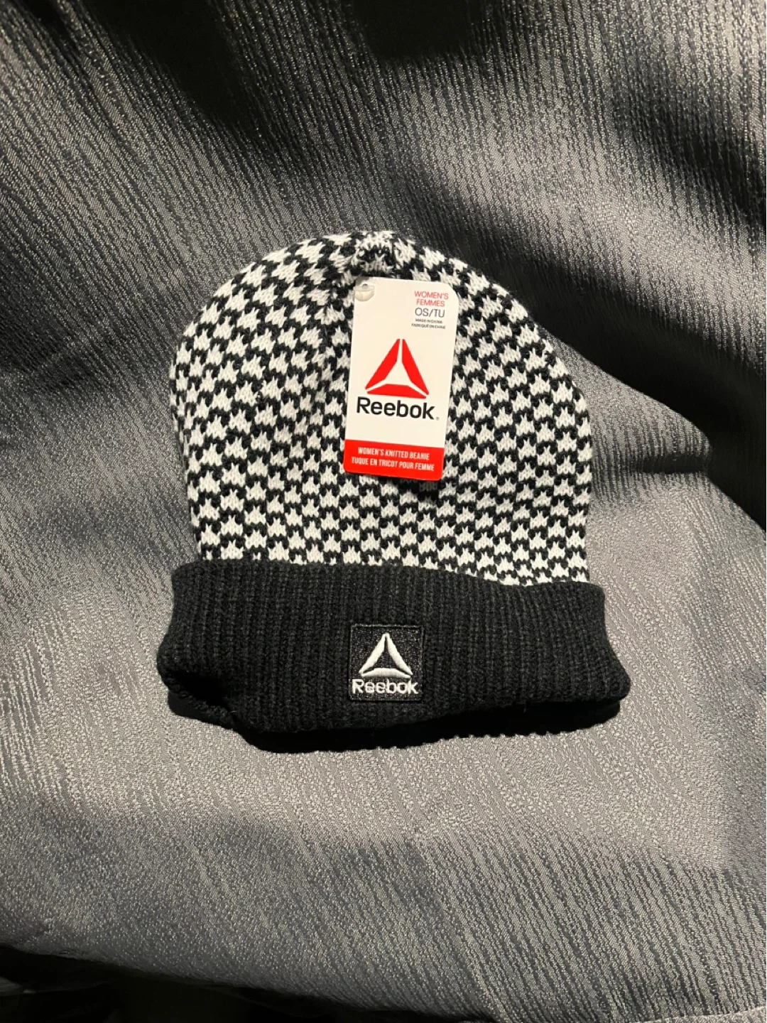 Keep your head warm with this stylish Reebok women's knitted beanie! It features a classic black and white pattern and a comfortable fit. One size fits most.