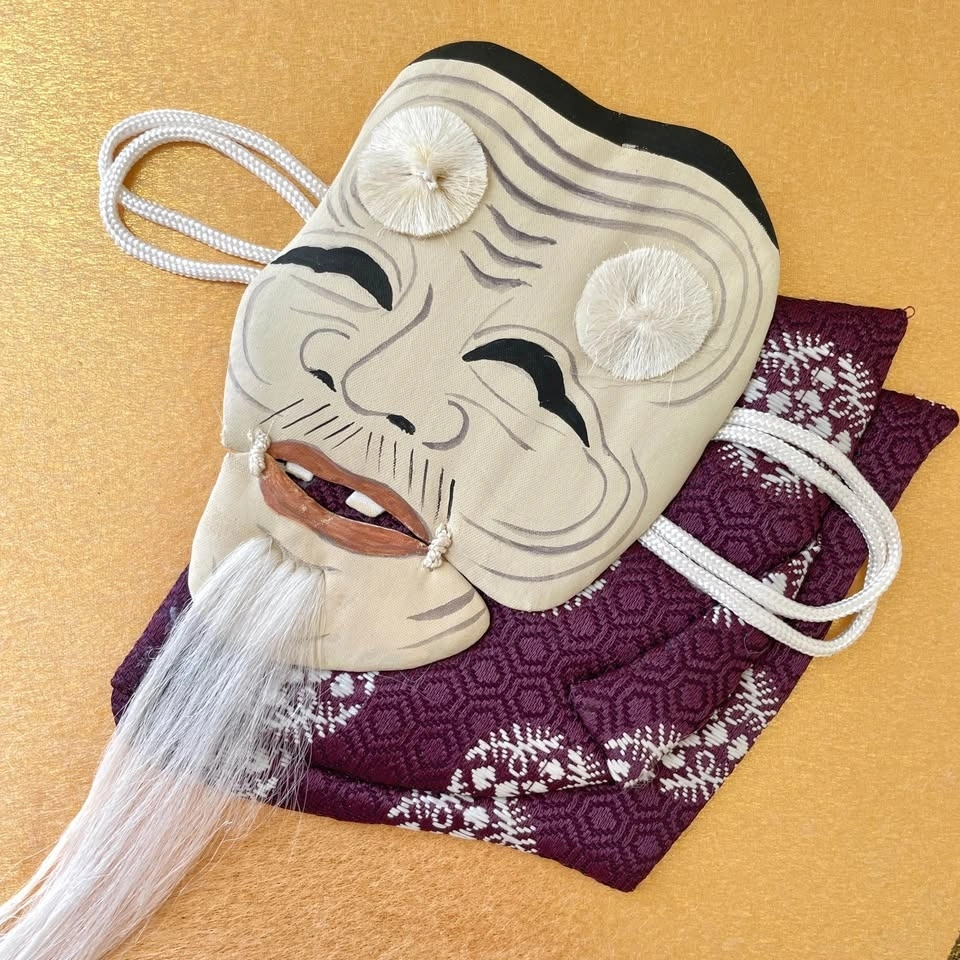 Featuring the revered Okina (翁) Noh mask, one of the oldest and most sacred masks in Noh theater, symbolizing wisdom, longevity, and good fortune. Performances with Okina are considered prayers for peace and happiness, making it a meaningful motif in Japanese culture.
