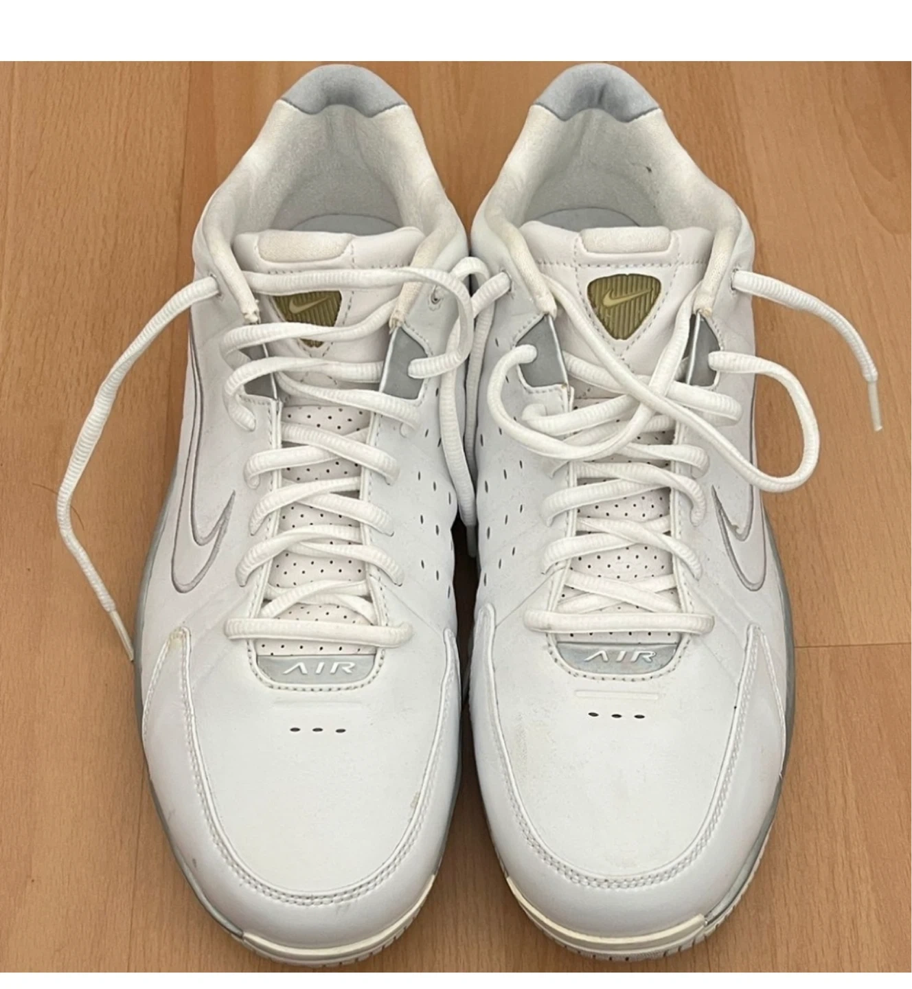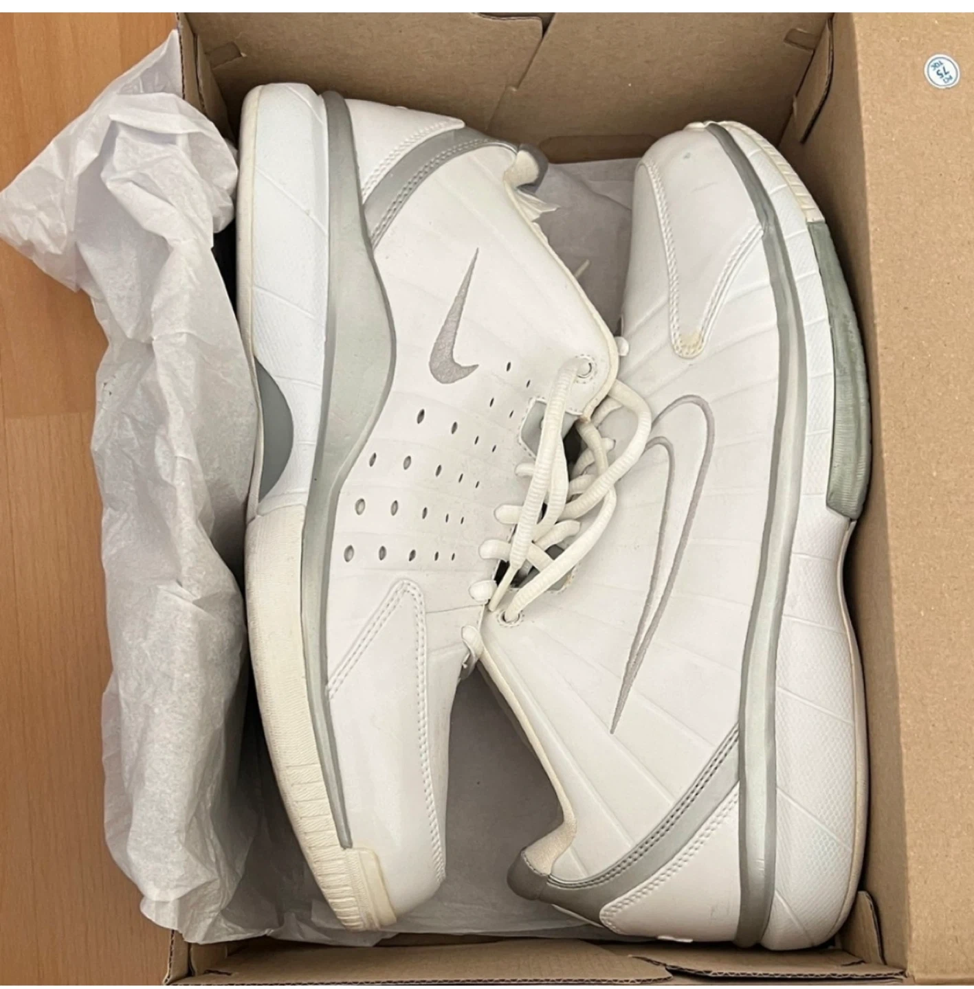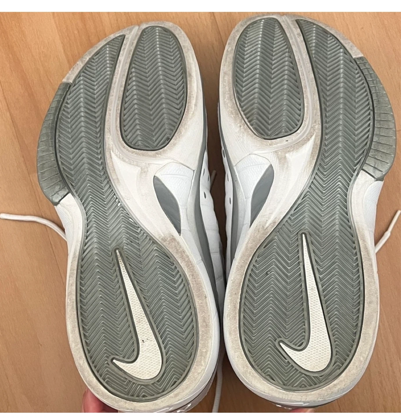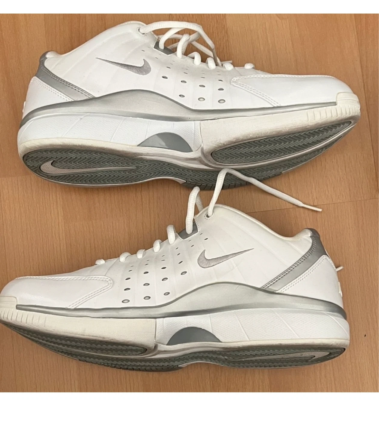Selling a pair of Nike Air sneakers in white and silver! They show some signs of wear and scruffs but as seen in photos