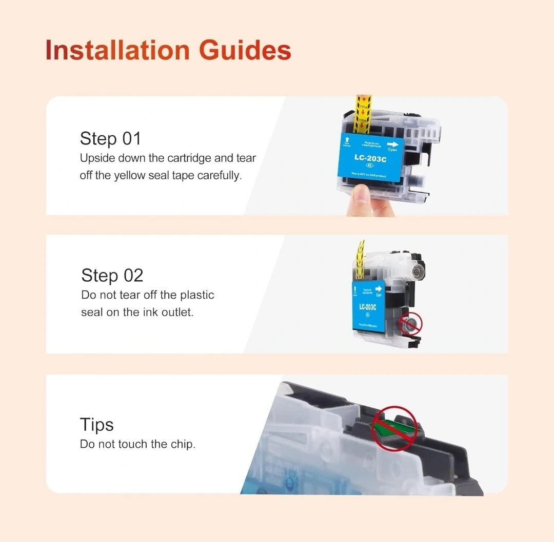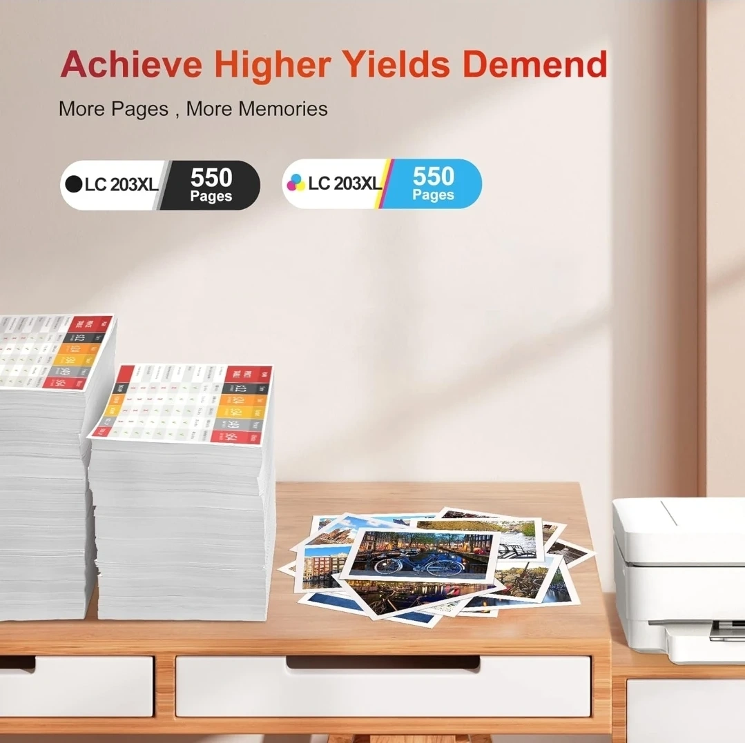 Selling a compatible ink cartridge replacement for Brother printers! This is an ejet LC203XL ink cartridge set, compatible with various MFC and J series printers. It's a 11-pack, including black, cyan, magenta, and yellow inks, so you'll be set for a while! Achieve higher yields and print vivid colours for clear memories