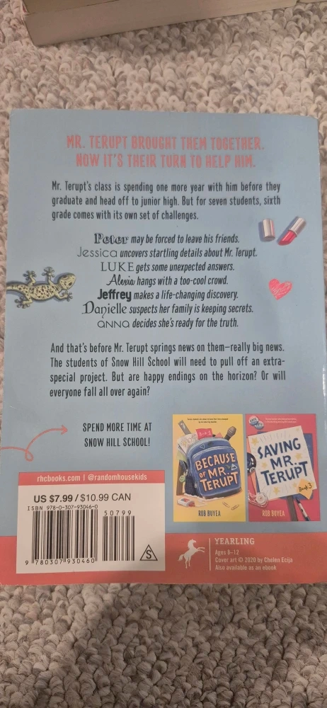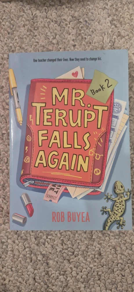 Selling the second book in the Mr. Terupt series, "Mr. Terupt Falls Again" by Rob Buyea! It's a great read for ages 8-12. This book is in great shape and ready for its next reader.