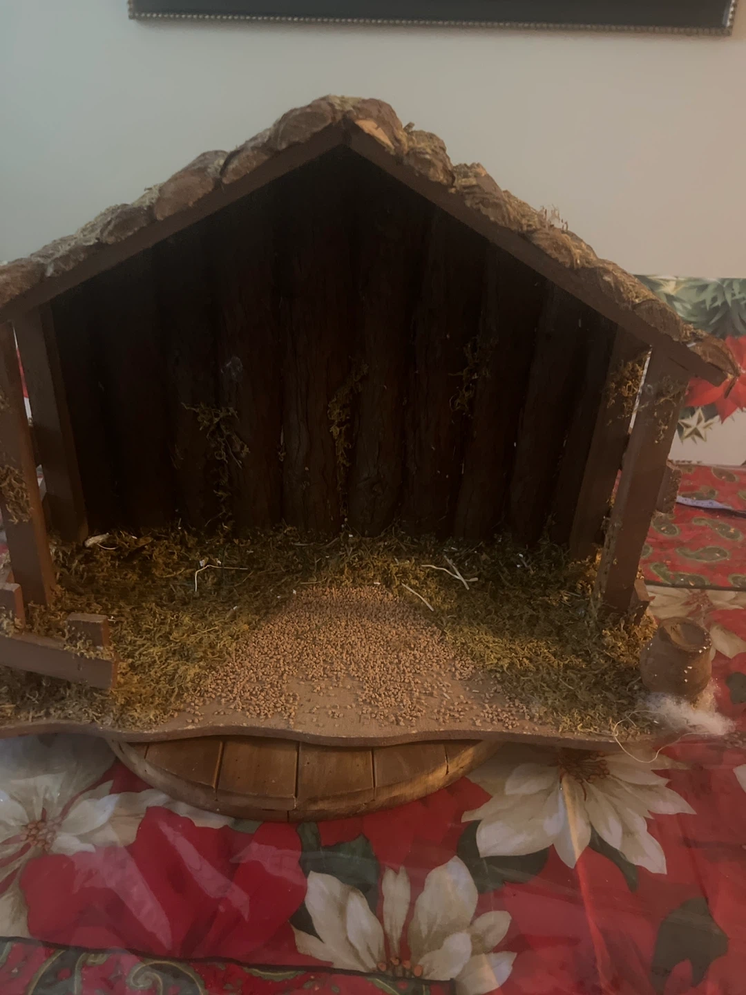 Selling a wooden nativity scene stable. It's in good condition and ready for your Christmas decorations!