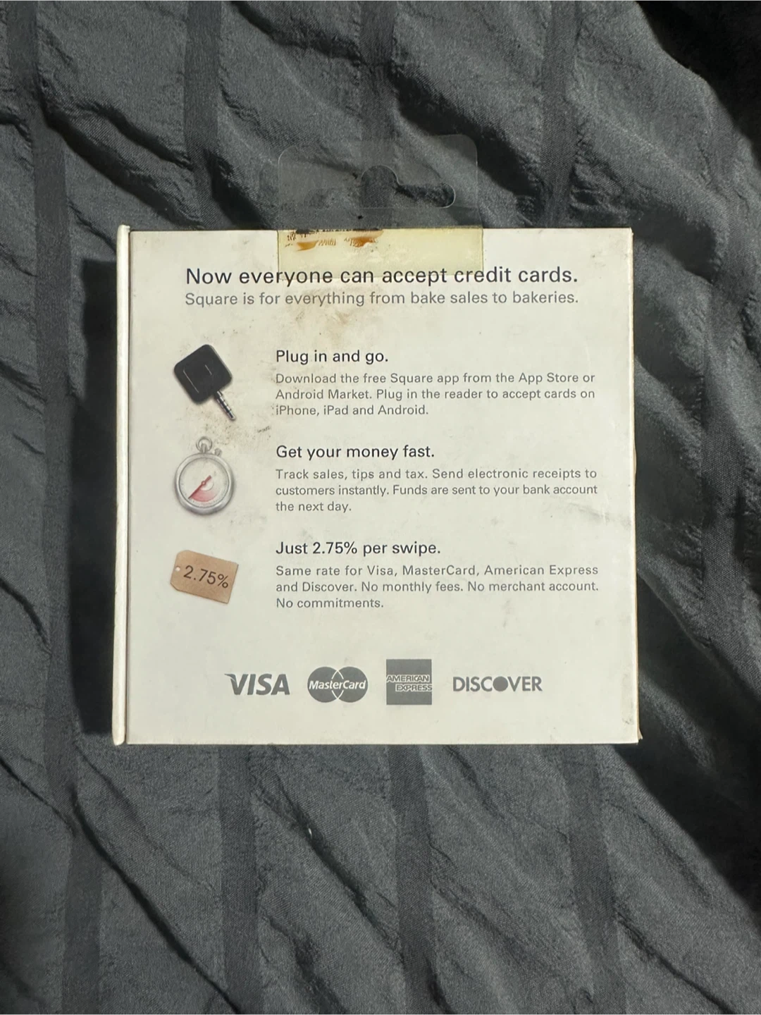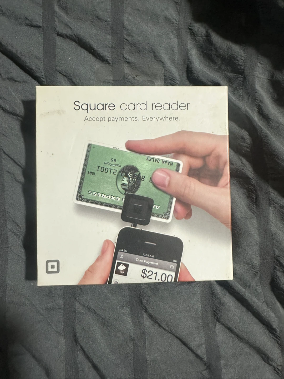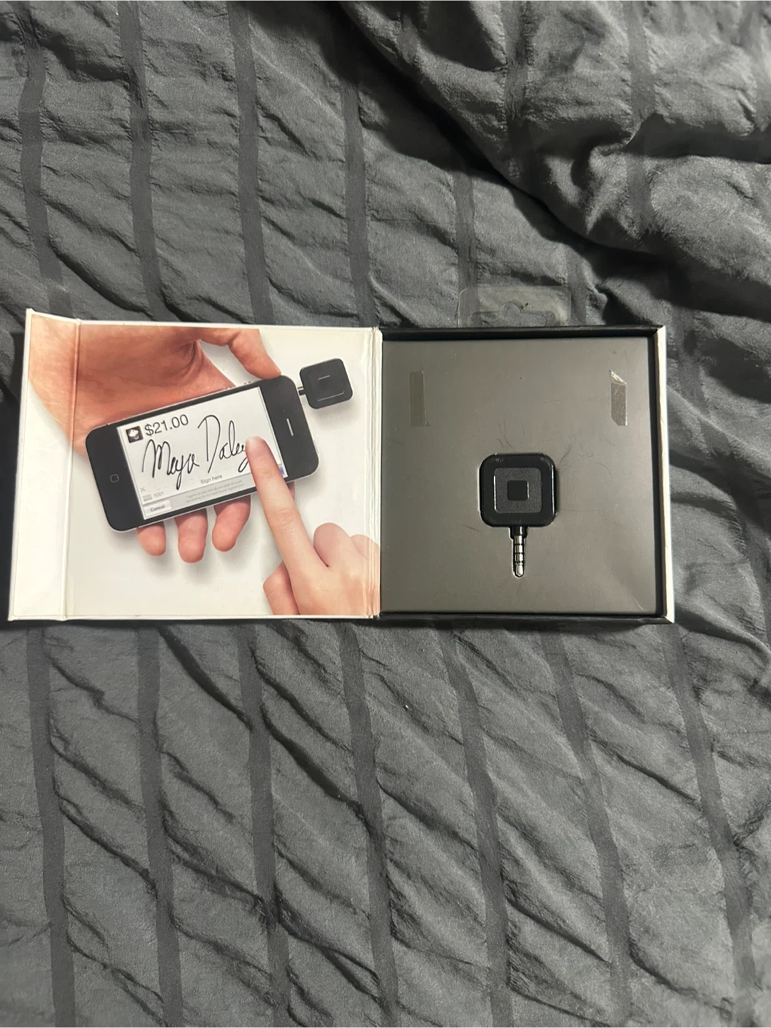 Selling a Square card reader! It's perfect for accepting credit card payments wherever you are. The box is included. Now everyone can accept credit cards, from bake sales to bakeries!