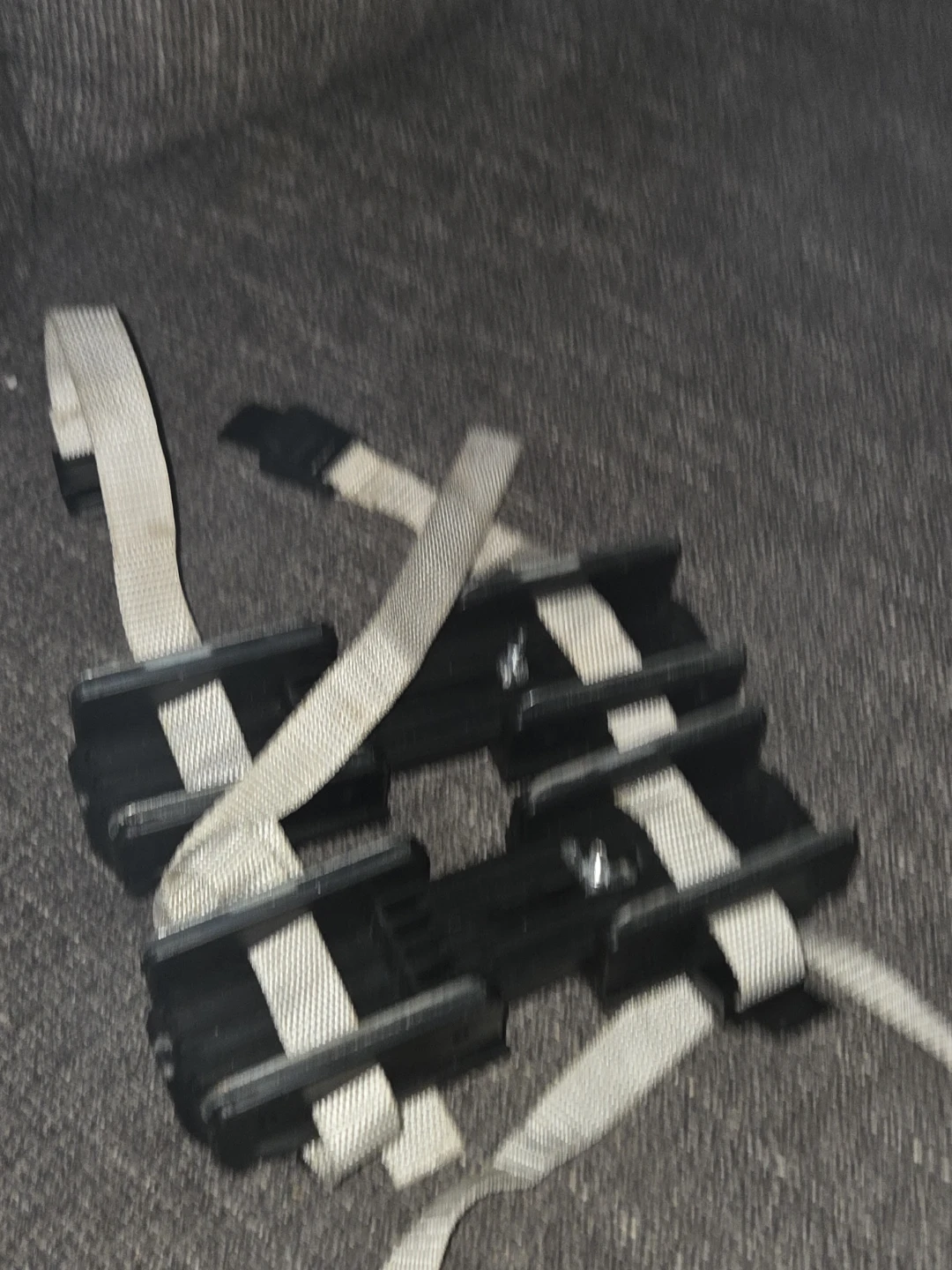 These are a pair of bob skates. These are adjustable, double-bladed skates designed for beginners, typically small children, to attach to their own winter boots.