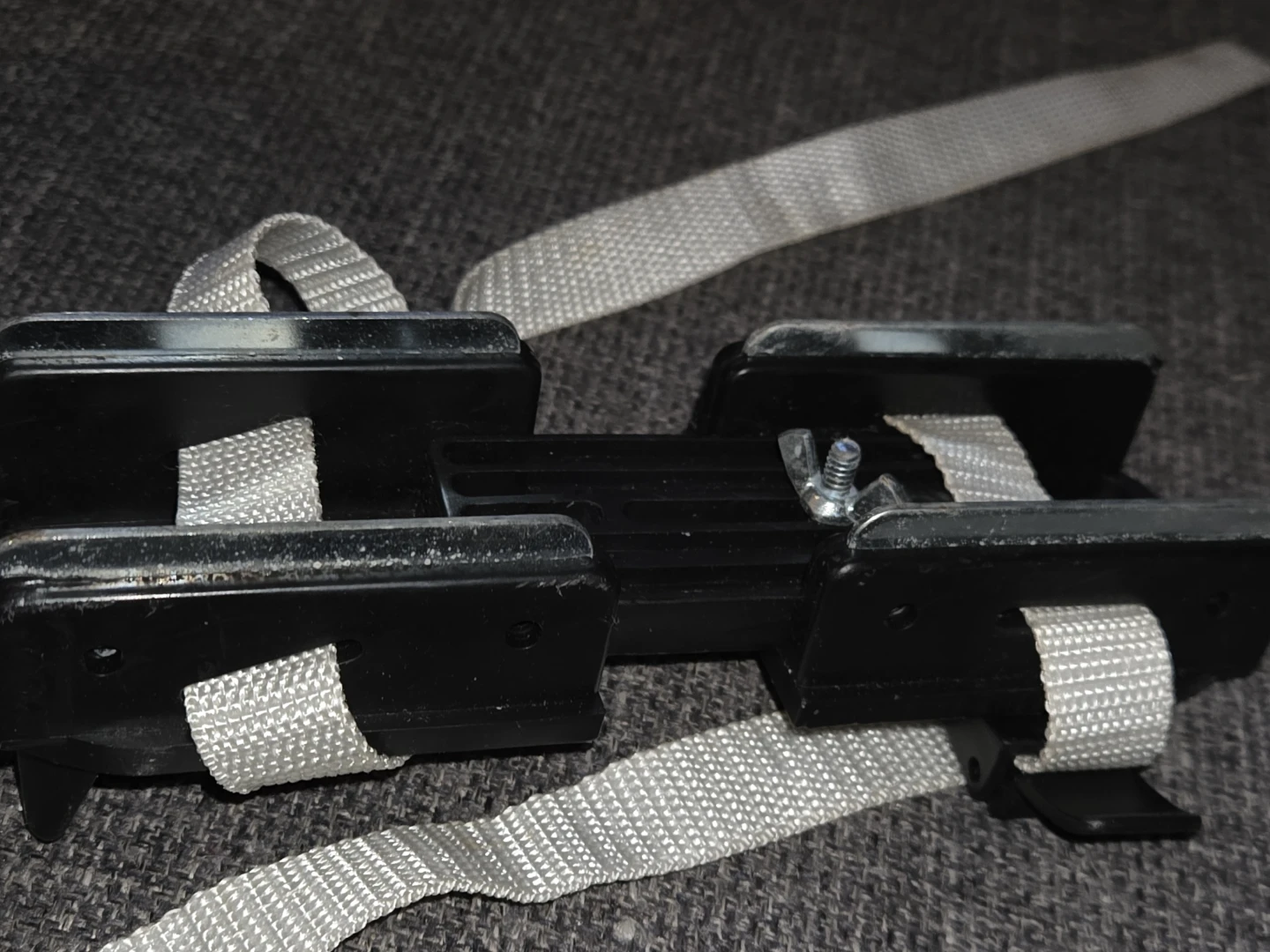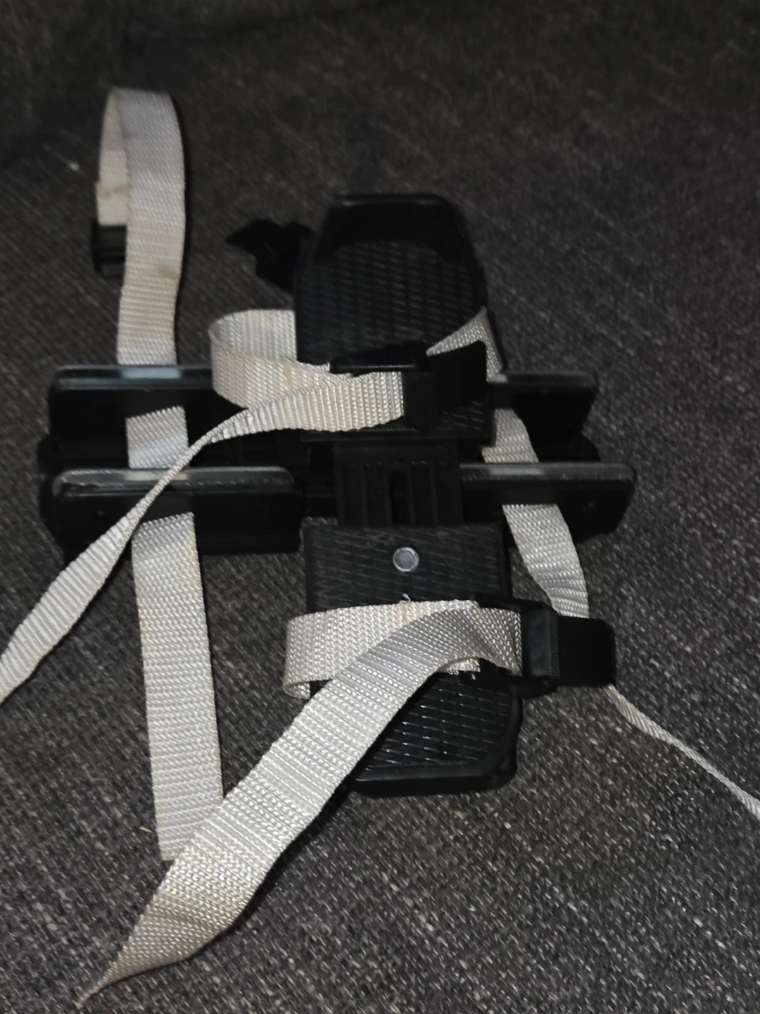 They typically have adjustable plastic bases and are secured with straps.
