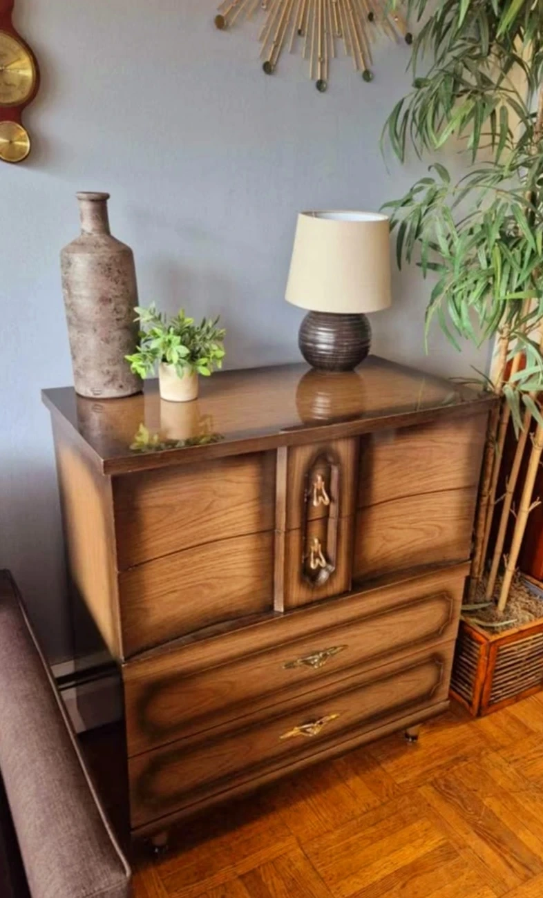 Tags: retro vintage antique burl wood rosewood walnut brass gold copper 1920s 1930s 1940s sideboard credenza buffet server Hutch cabinet tv bench hallway table console table entertainment unit living room dining room mcm mid century modern furniture retro vintage vinyl teak 1950s 1960s 1970s sixties tall boy tallboy cb2 eq3 west elm rental staging film tv Bedroom chest of drawers dresser westendtrends furniture vanvaluevintage film