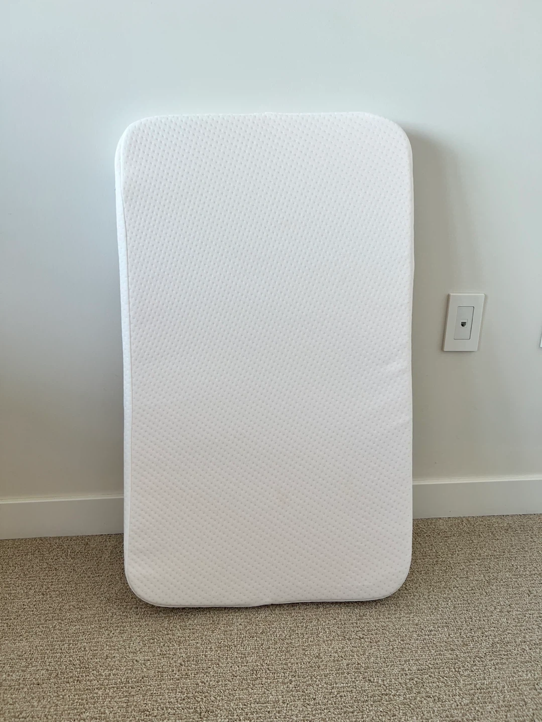 Selling a Baby Bassinet Mattress, 100% Breathable Cover, Water-Resistant Lining, Rectangle 33"x20"x2". It’s in great condition.