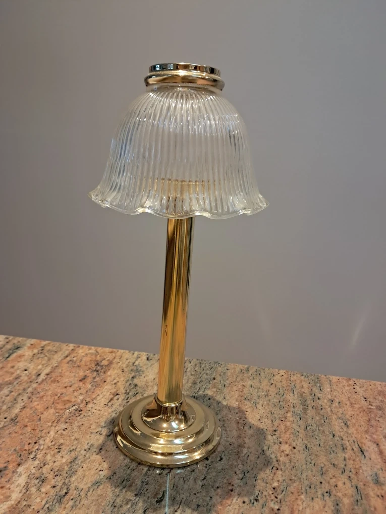 Selling three Partylite accent table lamps with gold bases and glass shades. One has a geometric pattern and the other has a frosted floral design. All are in excellent condition and would look lovely in any room! $25.00 for the Mosaic lamp,