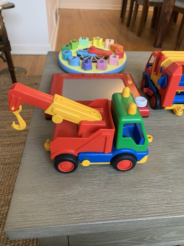 WADER made in Germany tow truck with working parts WADER made in Germany garbage truck with working parts. Perfect for Christmas and holiday presents, day-care, classrooms and great for collectors! Asking $7 each, for both for $10.