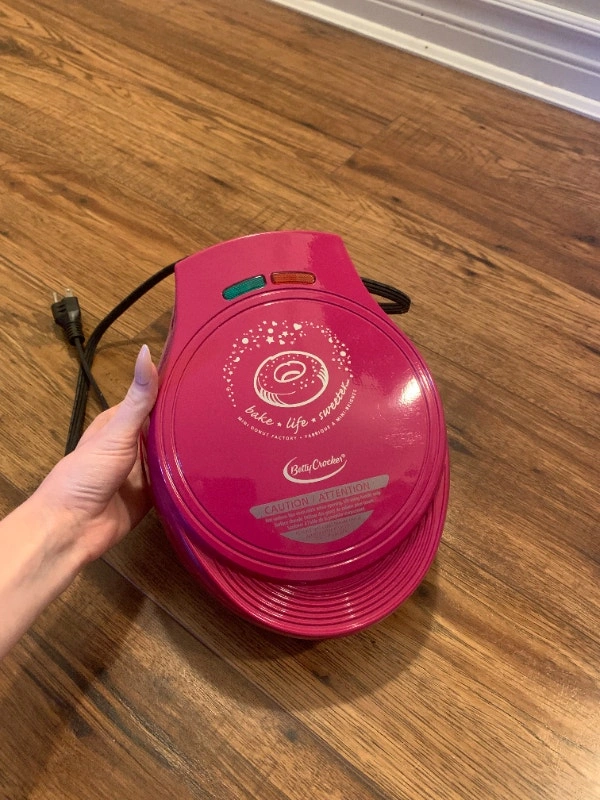 Betty Crocker Mini Donut Factory Donut Maker BC2938; used once, like new condition; with original manual & recipe booklet, no box. $20 or best offer - (this item or similar models retail from $30 - $50) Bakes 7 donuts in minutes without frying. Non-stick baking plates and cool-touch handle along with power-on and temperature-ready indicator lights for simple operation. Stands on end for compact vertical storage. Easy-to-use, fun, and perfect for holiday gifts, baking & classroom activities.