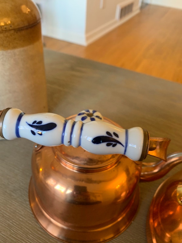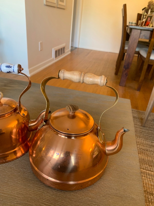 1 / 101 / 10Buy & SellVintage Copper KettlesVintage Copper Kettles$30Beautiful vintage copper kettles - some minor dents, with lovely patina $20 each or both for $30 Will entertain reasonable offersWHERE TO MEETCheck LocationView MapSELLERPCMartingrove544 reviews2 chats·4 favorites·50 viewsSEND CHAT TO SELLERHi PC! I’m interested in your listing.Hi PC! I’m interested in your listing.Get the Karrot app to chatSign In to chat